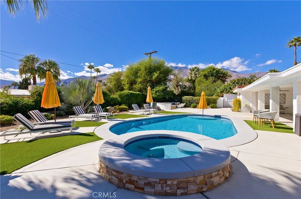 Monthly and/or Short Term Rental. Welcome to The Movie Colony Escape, a rare 4-bedroom, 4-bathroom Mid-Century Modern home in one of Palm Springs most iconic neighborhoods ? The Movie Colony is where Hollywood legends such as Frank Sinatra, Elizabeth Taylor, Marilyn Monroe, Cary Grant, Dinah Shore, Dean Martin once escaped the studio lights and found their paradise beneath the desert sun. This gem offers resort-style outdoor living and timeless Hollywood charm. Your sunny sanctuary all year long. This rare Mid-Century Modern residence spans over 2,100 square feet of living space on a nearly 11,000 square foot lot. Light, bright, and private, designed for effortless desert living, the home features clean mid-century lines, open spaces, and glass doors that invite the outdoors in. Each bedroom has its own bath, providing comfort and privacy for families or groups traveling together. Outside, a resort-style backyard awaits ? complete with a sparkling pool, cozy fire-pit, lounge chairs, and outdoor dining area framed by swaying palm trees and panoramic mountain views. Ideal for snowbirds, seasonal travelers, short-term vacation stays. Only 5 minutes from Downtown Palm Springs shopping, world renowned dining, nightlife. Close to Palm Springs Art Museum & Uptown Design District, Convention Center. Minutes from world-class golf, spas, and hiking trails. 10 minutes from Palm Springs International Airport. NOTE: Rates vary by season, length of stay, and holiday periods. ? Please inquire for current pricing and availability. ? High Season (Dec?April), ? Mid-Season (May, June, Oct, Nov), ? Low Season (July, Aug, Sep)