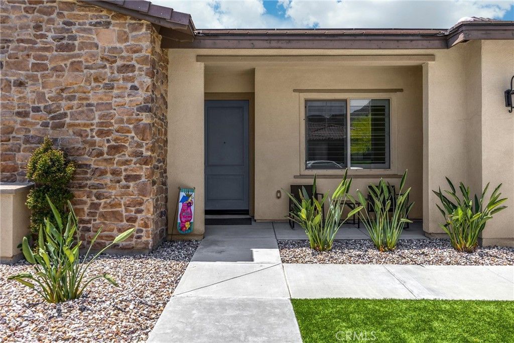 Welcome home to 11638 Oakton Way, a stunning single-story corner lot home nestled in Coronas premier 55+ gated community of Terramor, where the views are unmatched, and the lifestyle is second to none. This meticulously maintained home feels brand new and offers a perfect blend of luxury, comfort, and entertainment.Step inside and fall in love with the open concept floor plan featuring 3 spacious bedrooms, each with its own private en suite bathroom, a powder bath for guests, and a versatile flex room with glass doors, ideal for an office, craft room, or game space. The chefs kitchen is the heart of the home, complete with quartz countertops, sleek white thermofoil cabinetry, built in stainless steel appliances, a walk in pantry, gorgeous blue tile backsplash, and a massive island with an extended table height breakfast bar, perfect for morning coffee or entertaining guests. Adjacent to the kitchen is a dining area thats large enough for a formal table, or even a pool table! Add in the custom full-size bar with a wet bar sink, beverage fridge, and barstool peninsula, and this home becomes an entertainers dream.Seamlessly transition to indoor-outdoor living in the beautifully designed California room, complete with electric fireplace, ceiling fans, TV hookup, and a motorized floor to ceiling sunscreen for year-round enjoyment. The backyard offers breathtaking mountain views, stamped concrete, a second covered patio, low-maintenance landscaping, and even a storage shed. Throughout the home, youll find luxury wood vinyl plank flooring, soaring 10 ceilings, and elegant plantation shutters. The spacious primary suite includes a spa-like en suite bathroom with an oversized walk-in shower, dual vanities, and a huge walk-in closet. Additional features include a 13 panel Sunrun solar system, drought tolerant landscaping with turf, whole house water softener, and a 2-car garage with 220V- perfect for electric vehicles. Living in Terramor is more than just owning a home, its an experience. Residents enjoy resort style amenities including three pools (one adult-only), spa, gym, sauna, tennis and pickleball courts, bocce ball, dog parks, scenic walking trails, a clubhouse, outdoor cooking spaces, and even a full bar and event room. All just minutes from the 15 freeway for easy access to everything. This is more than a home, this is your next chapter in luxury living.