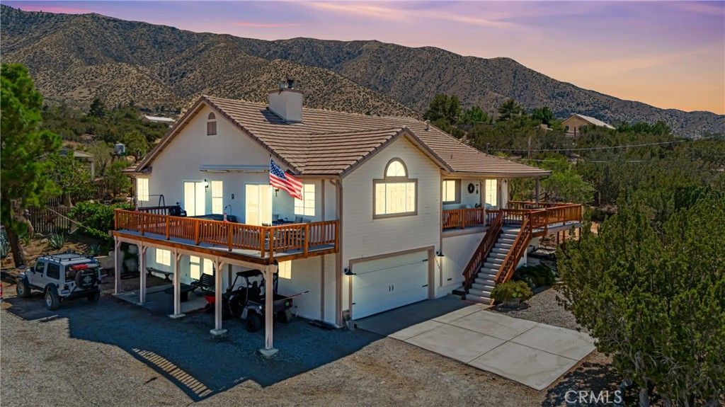 Grand Ranch Two-Story Estate in the Scenic Juniper Hills Community. This Warm & Inviting Estate Nestled in the Picturesque Juniper Hills Sitting on 2.50 Acres of Serene, Usable Land with Breathtaking Panoramic Views of the Mountains. This Gorgeous Home Offers Four Bedrooms & Three Bathrooms Featuring 3,188 sq. ft. of Thoughtfully Designed Living Space. This Custom Two-Story Home is Perfect for those Seeking Privacy, Space, and Versatility. Step Into a Home that Exudes Rustic Ranch Charm, with Classic Country-Style Architecture & Rich Wood Features Throughout, Including Exposed Beams, Wood-Paneled Accents, & Warm Finishes that Give the Home a Cozy, Timeless Feel. The Spacious Living Areas are Anchored by a Charming Potbelly Stove, Perfect for Gatherings on Cool Evenings. The Chef's Kitchen Featuring Ample Cabinet Space, a Large Center Island with a Built-In Range & a Breakfast Bar. The Open-Concept Dining Room Flows Seamlessly into the Patio Deck Complete with a Stylish Atmosphere for Effortless Gatherings. Cozy up During Winter Nights by a Stunning Rock Fireplace in the Luxurious Primary Suite. The Primary Suite Boasts a Large Walk-In Closet & an En-Suite Bathroom with a Large Custom-Tiled Shower & a Soaking Tub that Looks Out onto a Peaceful Patio Oasis. The Guest Bathrooms are Tastefully Decorated with a Ranch-Inspired Feel, Featuring Rustic Finishes & Natural Tones that Perfectly Complement the Home's Country Aesthetic. Additional Features Include a Private Well for Water Independence, & Two Oversized Covered RV Garages, One of Which Includes a Fully Covered Carport Providing Ample Space for RVs, Boats, Trailers, or Extra Vehicles. Downstairs, You'll Find a Cozy Ranch-Style Game Room with Its Own Built-In Bar & Fireplace, along with a Full Bathroom, an Ideal Space for Entertaining, a Private Guest Suite, or Multi-Generational Living. Looking for a Private Retreat, or Equestrian Property! Juniper Hills is a Hidden Gem Offering Rural Charm with City Convenience