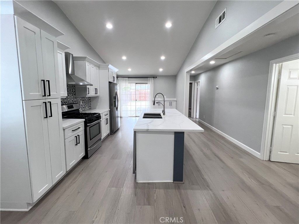 Welcome to this beautifully remodeled residence located in a quiet and established neighborhood of Moreno Valley. Thoughtfully upgraded throughout, this home offers a seamless blend of modern design, comfort, and functionality. Upon entry, you are greeted by a bright, open-concept living space featuring updated flooring, recessed lighting, and an inviting layout ideal for both everyday living and entertaining. The fully renovated kitchen serves as the centerpiece of the home, showcasing quartz countertops, custom cabinetry, stainless steel appliances, and a stylish designer backsplash. A spacious center island provides additional workspace and gathering space.The dining area is filled with natural light and opens effortlessly to the backyard, creating a smooth indoor-outdoor flow. The exterior offers a generously sized yard with a covered patio, perfect for outdoor dining, relaxation, or entertaining. Down the hall, the home continues with well-appointed bedrooms offering flexibility for a variety of living needs. The bathrooms have been tastefully updated with modern finishes, clean lines, and a fresh, contemporary feel. The primary suite provides a comfortable retreat, complete with an upgraded ensuite bathroom featuring a sleek glass-enclosed shower and modern fixtures. Conveniently located near shopping, dining, parks, and major commuter routes, this home offers both privacy and accessibility. A turnkey opportunity with quality upgrades throughout.