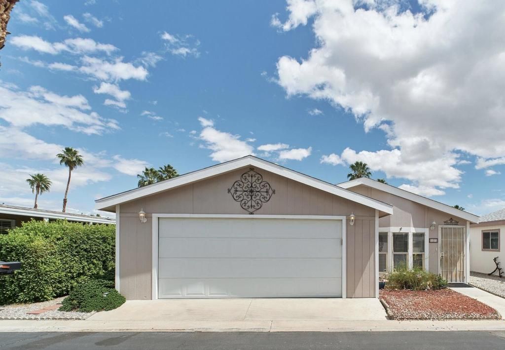 Located in The Canyon, a gated community in the heart of Cathedral City. This 2002 Skyline double-wide manufactured home offers a comfortable and easy to maintain living environment designed for everyday convenience. Interior features a bright, open layout that allows for a natural flow between the main living areas and kitchen creating a space that feels inviting and functional. Additional features include laminate flooring newer HVAC and indoor laundry. A covered patio extends the living space outdoors offering an area to relax. The attached garage offers covered parking and or additional storage.