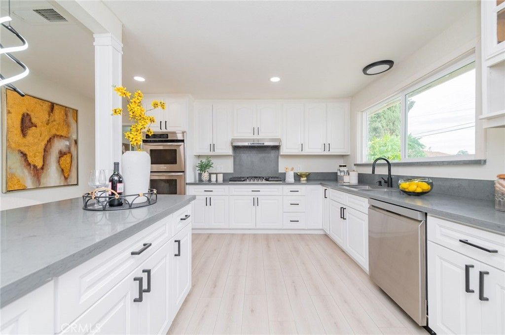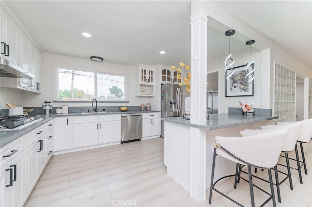 ***Seller contribution to Closing Costs is available!!*** Welcome to 1334 S Glendora a fully upgraded 2-story 4-Bedroom 3-Bath POOL home with tons of amazingly trendy twists. Follow a paved walkway, you are invited to this exceptionally stylish house: Bright & open LIVING ROOM provides a cozy electric FIREPLACE and expansive windows filled with a flood of natural lights and cool breeze. Your family and dear friends will celebrate many special events around the beautifully GOURMET KITCHEN which cheerfully glows with popular white cabinetry, matching soft gray quartz countertops, stainless steel appliances, and peninsula ISLAND and FORMAL DINING AREA next to it. All those strike a tasteful juxtaposition with the earthy waterproof high quality laminated wood flooring throughout this ground level. Entertaining FAMILY ROOM is the next spacious and versatile place for gathering: game watch/play, Karaoke, and tutoring (music, dancing, art studio...). 3 good-sized bedrooms and 2 upgraded bathrooms positioned along the hallway downstairs. 2nd floor was a permitted room addition in year 1991. It became an exquisite and romantic PRIMARY BEDROOM ENSUITE with skylight, huge walk-in closet, bladeless low profile ceiling fan/light, freestanding soaking BATHTUB, frameless glass enclosure for stall shower, dual-sink vanity and enjoyment of mountain views. Touring the house, you will be impressed by the thoughtfully chosen and premium quality of accessories, LED lights, 6-speed bladeless fans in all rooms, matte black faucets, frosted glass closet doors, custom shower doors, premium medicine cabinets, locks, handles.... Its magnificent upgrades or features also included: newly painted interiors & exteriors, double-paned windows, scraped ceilings, repiped COPPER plumbing, NEST thermostat for central AC & heating, and upgraded 200+ amp electrical panel. Sparkling SWIMMING POOL is resurfaced with Pebble-Tec finish, newer filter, and skimmer. Backyard is block walls enclosed & fenced with a driveway to accommodate 3 or more vehicles or RV parking. 2-Car GARAGE is via alley access with (new myQ motor) wrought iron slider gate. ***Location is convenient to all and this house has almost everything you would dream to have!! Hurry it won't last.*** 3-D virtual tour (copy & paste) https://my.matterport.com/show/?m=m1yj7wAmcSG&brand=0 and List of Special Features and Improvement are available.