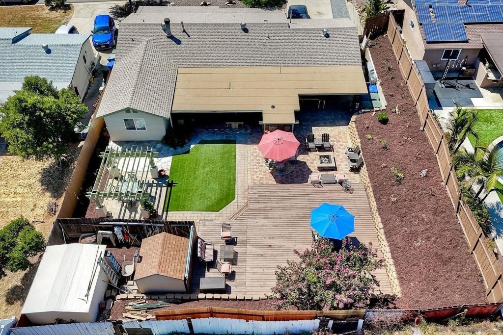 Welcome to this warm and inviting home set on a large, flat, and fully usable lot designed for easy living and memorable gatherings. The outdoor space is a true highlight, featuring covered areas for dining and entertaining, custom pavers, turf, built in BBQ, firepit, and even a dedicated woodshop?perfect for hobbies or creative projects. Inside, youll find an upgraded kitchen with quartz countertops, a center island, and newer stainless steel appliances. The home offers stylish laminate flooring, a cozy stacked stone wood-burning stove, recessed lighting, and ceiling fans throughout. The primary suite includes a beautifully remodeled shower with custom tile. An expanded layout includes a spacious fourth bedroom (converted from the garage, non-permitted) plus additional storage. Enjoy peaceful westerly views, no HOA, and a convenient location near shopping, parks, hiking trails, and schools.