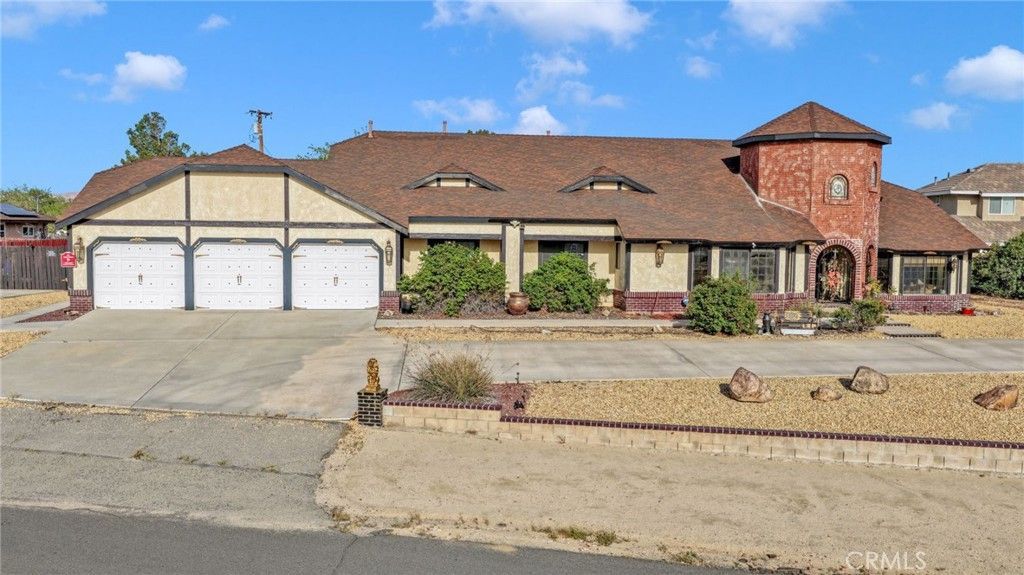 The Iconic Castle House of Apple Valley ? A One-of-a-Kind Architectural Estate Where Romance Meets Timeless Design **The Iconic Castle House of Apple Valley?A Truly One-Of-A-Kind architectural estate blending Spanish, Mediterranean, Tudor, and Craftsman influences?**stands as a rare and unforgettable expression of design, history, and character. From the moment you arrive, the circular driveway creates a sense of arrival befitting its name. Inside, Soaring 25-Foot Ceilings command attention, while Two Grand Living Spaces, each centered around dramatic floor-to-ceiling stone fireplaces, offer both intimate warmth and striking architectural presence. Natural light pours in as every angle captures Sweeping Desert Views, creating a serene and elevated living experience that feels both expansive and private. Spanning approximately 3,025 square feet, this distinctive estate features 3 bedrooms (optionally 5), 2.5 baths, and a Private-Entry Casita with Mini Bar?perfect for guests, extended family, or flexible living arrangements. The primary suite offers a peaceful retreat, complete with dual sinks, a soaking tub, and tranquil backyard views designed for relaxation and quiet moments. Set on an expansive ~24,800 sq ft lot, the property includes a 3-Car Garage, Generous RV And Boat Parking, and ample space to build an ADU?providing both lifestyle flexibility and future potential. Conveniently located near Jess Ranch Marketplace, St. Mary Medical Center, and top-rated Apple Valley schools, this home combines accessibility with the privacy of a true estate setting. Preserved with intention, this residence maintains its original charm and architectural integrity?offering a Rare Opportunity To Own A Piece Of Local History that is as distinctive as it is timeless. Distinctive. Iconic. One-of-a-Kind. This is the Castle House of Apple Valley. Your legacy begins here.