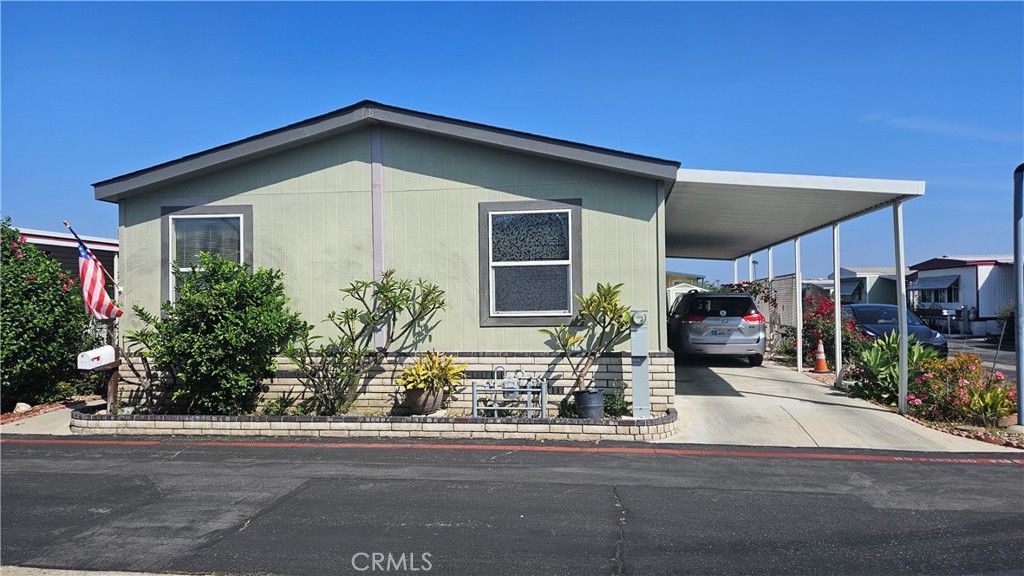 * Move-in Ready 2011 Champion home. * Spacious 1608 sqft, 3 bedrooms and 2 baths home * In +55/18 Community!!! * * Central heater & window AC * flooring * Dual pane windows * Master bedroom suite with walk-in closet * Samsung washer/dry, SS refrigerator, 2 large TV's, all furniture are included * Corner lot with beautiful landscaping and brick planter * 2 sheds * Long driveway with 3-car parking spaces * Additional guest parking spaces are close by * Space rent $1,650 per month