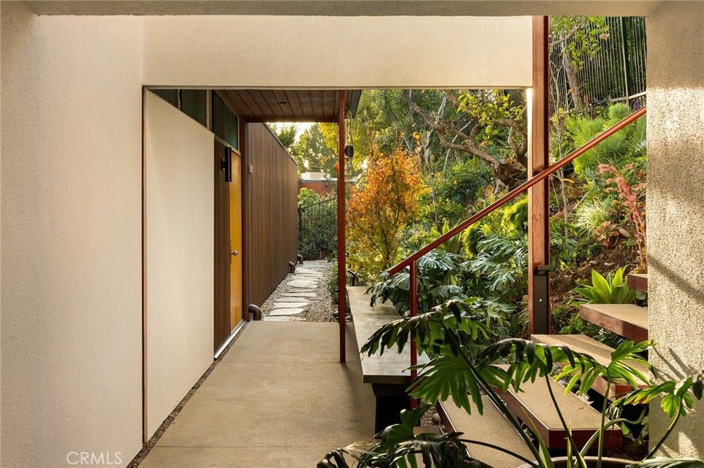 Published and recognized mid-century Case Study architect Craig Ellwood, The Byron Lamar Johnson House, 1953 is the third in the series of Ellwoods recorded steel hillside houses, located in Crestwood Hills of Brentwood, on prestigious Tigertail Road. Here is a great example of pedigree mid century architecture at the top of Crestwood Hills, an incredibly prized Ellwood, here you will find a meticulous restoration honoring the Ellwood design ethos. Conceptually pristine, once called Beauty of the House of Steel in the LA Examiner. The property consists of two separate addresses. The main residence incorporates 3 bedrooms, 2.5 baths, plus new ADU 1 bed w/full steam shower bath & kitchen direct to the pool area. Whole house automation, solar panels, Tesla power walls, EV charger, brand new roof w/rooftop sprinkler, terrazzo floors, Lutron lighting, Baldwin and Fleetwood doors/windows, new sewer and gas line, motorized shades, restored gas/wood burning fireplace, water filtration, Gaggenau, Wolf Subzero appliances, outdoor kitchen w/Lynx Barbecue & pizza oven, grass lawn w/period chaise lounges, skylights, Waterworks fixtures. Every detail has been carefully curated from the furnishings to the finishes making this a truly turnkey living experience. Tigertail trailhead steps from door, minutes to Brentwood Country Mart & Farmers Market. History preserved and restored. Offered fully furnished.