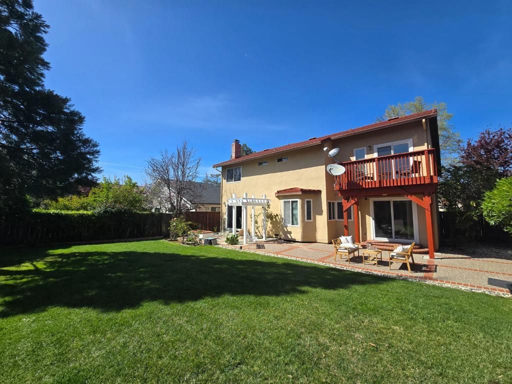 Welcome to this inviting home featuring a stunning vaulted ceiling in the formal living room, a cozy fireplace, & updated flooring that adds warmth & character from the moment you enter. The dining area includes a convenient sliding glass door that opens to the backyard patio, creating an easy indoor-outdoor flow for entertaining. The kitchen boasts premium features, sleek countertops, appliances, ample cabinetry, & a breakfast bar. The spacious family room has a fireplace for cozy winter nights, while a glass sliding door opens to the backyards expansive patio, perfect for relaxation, entertainment, & gatherings. Upstairs, the en-suite primary bathroom impresses with a walk-in closet & sliding glass door to a private balcony. The second bedroom upstairs also has its own sliding glass door leading to a private balcony. Additional features include double-pane windows. A spacious ground-floor bedroom with a hall half-bath offers flexibility for guests, extended family, or a home office. There is also an electric chair lift between the floors for added convenience. Ideally located near the 880 & 680 freeways, Warm Springs Park, shopping centers, Warm Springs/South Fremont BART, & Tesla Fremont, this home offers comfort, functionality, & an excellent commuter-friendly location.