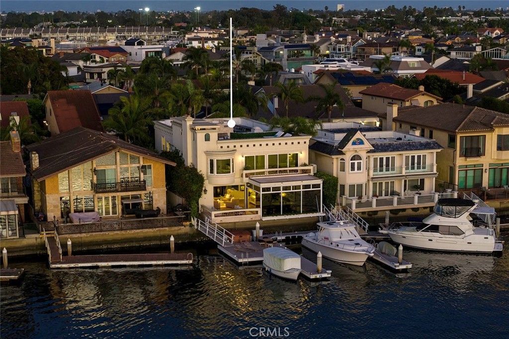 Properties with this rare combination of views and scale are seldom offered along the coveted main channel of Huntington Harbour. Set on a 5,000-square-foot parcel, the home and its private surroundings are arranged in deliberate sequence, maintaining a unique connection to the open water and its splendor. Reconstructed by notable architect Karen T. Otis as a beautiful exploration of light, water, and movement, the structure is articulated through craftsmanship quality; a thoughtful, enduring layout; and a light, textural palette. An immediate atmosphere of volume and detail is realized through a spacious, gated courtyard and atrium, continuing to a striking two-story foyer with a sky-lit oculus, and an ambient water feature delicately defining the entrys perimeter. The principal level unfolds as an open expanse encompassing a generously proportioned kitchen, formal and informal living and dining areas ? all with captivating triple-channel view orientations. Walls of glass retract to extend the interior to a waterside terrace, along with an all-glass room to enjoy the on-water environment at any time or season. The second-level accommodations were carefully planned to enhance privacy, with the resort-style primary suite and wardrobe room positioned to capture panoramic views from nearly every vantage, along with its own channel-front balcony. A third-level observation and entertaining deck ? an uncommon attribute of homes in the region ? presents an extension of livability amidst a spectacular canvas of tranquil waterways, sunsets, and city lights. Crowning the property is a recently upgraded private dock with berthing capacity for an approximate 65 vessel and additional craft up to about 30; as well as a dock extension with a ?floating spa and lounge area ideal for enjoying the waters edge. Additional complements to this exceptional offering ? an elevator; refined finishes; custom millwork; abundant storage; whole-house solar; tankless water heating; a finished three-car garage with space for two vehicles in-drive; along with direct access to the Harbours main channel, and close proximity to famed Mothers Beach, and the finest local amenities, resources and recreation.