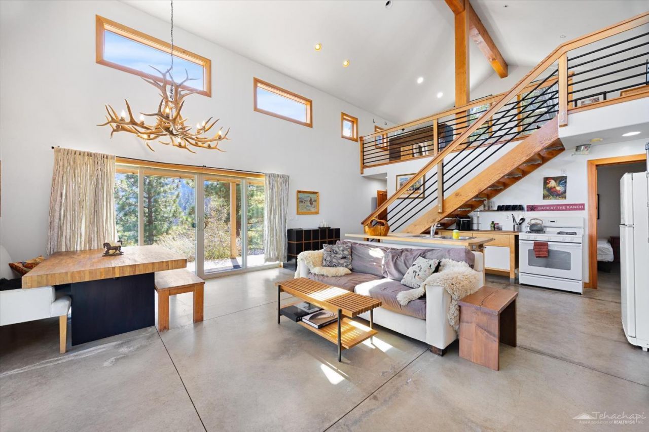 This off-grid architectural masterpiece is a dreamscape set within 2 2/3 acres of private, pristine forest. While it feels worlds away, this wooded oasis is situated just two hours from Los Angeles. Originally featured in Sunset Magazine, the residence was crafted with high-end, eco-conscious materials for the discerning buyer who appreciates the delicate balance between rugged nature and refined design. Solar-powered and off-grid, this self-sustaining sanctuary exemplifies the idea that environmental responsibility and hand curated luxury coexist effortlessly. Inside, an open-concept great room features polished concrete floors and soaring vaulted ceilings anchored by a sleek, minimalist wood stove.Thoughtfully placed windows frame the mountain landscape, leading to a gourmet kitchen designed for the modern chef. The layout offers a versatile upstairs sleeping loft with rich wood flooring and a private downstairs guest room, complemented by a full bath featuring a custom slate shower. Modern essentials remain uncompromised, outfitted with high-speed WiFi and streaming capabilities. Enjoy private hiking and unrivaled stargazing right from your door. With local wine country and Brite Lake just minutes away, this is a turnkey retreat featuring an established Airbnb income stream.Final 1.5 miles on unpaved surfaces; 4WD/AWD recommended during winter or inclement weather.