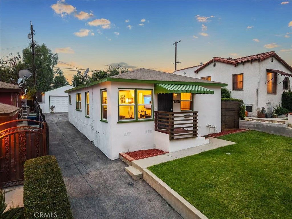 Nestled in the highly desirable Midwick Track of Alhambra. Delightful mid-century cottage features 2 Bedrooms and 1 Bathroom. Excellent curb appeal is highlighted by fresh exterior paint and a welcoming front porch accented with vibrant red steps. A bright and airy living room flows seamlessly into the formal dining area, creating an inviting space for both everyday living and entertaining. The updated kitchen features sleek quartz countertops, custom cabinetry, stainless steel appliances, and elegant ceramic tile flooring. Both bedrooms are generously sized and share a beautifully updated bathroom complete with a ceramic-tiled shower. Additional upgrades include hardwood flooring, dual-pane windows, and central air conditioning and heating, ensuring year-round comfort. Laundry space is available at the patio. The backyard serves as a private entertainers retreat, boasting a covered patio that extends the living space outdoors?perfect for alfresco dining and gatherings. The low-maintenance yard offers a new retaining wall and fence, a combination of concrete and grassy areas, while the long driveway and expansive concrete pad provide ample parking for multiple vehicles. A finished garage presents excellent potential for an ADU conversion, adding flexibility and value. Conveniently located near Cal State LA, local restaurants, and supermarkets. Easy Access to the 10 & 710 freeways.