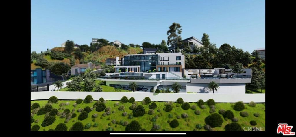 An Unmatched Opportunity to Create a Legacy Estate with Sweeping Iconic Views in the Hollywood Hills. Perched atop one of the most coveted private promontories in Los Angeles, this extraordinary 1.2-acre offering comprised of three oversized, contiguous parcels presents a truly once-in-a-generation opportunity in the heart of the Hollywood Hills. Boasting over 233 feet of street frontage and uninterrupted jetliner views stretching from Downtown Los Angeles to Catalina Island and the Pacific Ocean, this property delivers a rare combination of scale, privacy, and world-class vistas. The site is currently an expansive single-story mid-century residence offering approximately 2950 square feet of living space. Walls of glass frame breathtaking views from nearly every room, while generous interiors, a large motor court, and a resort-style pool and spa provide immediate livability and timeless architectural appeal. Whether, reimagined, or expanded, the existing home offers exceptional bones and serves as an ideal foundation for a remarkable transformation. For developers and visionaries alike, the potential is extraordinary. New construction possibilities exceed 15,000 square feet, with a rare flat pad, gentle slope, and expansive lot dimensions allowing for endless configurations ranging from a singular architectural masterpiece to a multi-structure compound complete with guest residences, entertainment pavilion, wellness retreat, and more. The wide, sidewalk-lined street is fully paved and features underground power lines, ensuring unobstructed skyline views for generations to come. Within the ultra-exclusive 90069 zip code, only 25 properties offer lots of this magnitude and none combine this level of frontage, infrastructure, privacy, and panoramic exposure. With neighboring estates already rebuilt or extensively renovated, long-term value is firmly established, positioning this property as the undeniable crown jewel of the block. Just moments above the Sunset Strip yet worlds away from the energy below, this offering is more than land it's an opportunity to create an architectural legacy. Whether restoring mid-century elegance or crafting a bold new statement, the canvas is limitless, and the views are simply unforgettable.