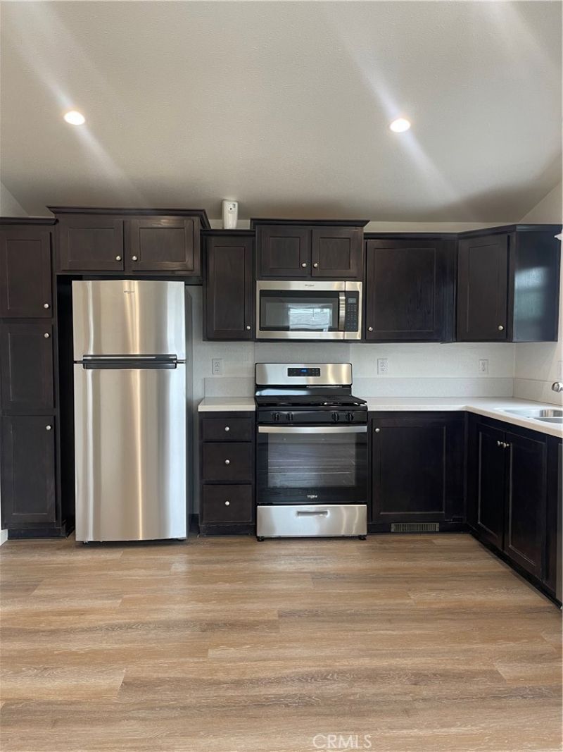 This 2022 Fleetwood manufactured home has 2 bedrooms and 2 bathrooms and is approximate 693 sq ft. With the open, modern floor plan the living space seems like so much more. Enjoy cooking in this stylish kitchen. With solid surface countertops, stainless steel undermount kitchen sink, and brand new appliances. The bathrooms also feature solid surface countertops and rectangular undermount sinks. The bedrooms are carpeted and the remainder of the manufactured home is waterproof vinyl plank flooring. Other upgrades include window coverings, ceiling fans, recessed canned lighting throughout, and many windows for natural lighting.