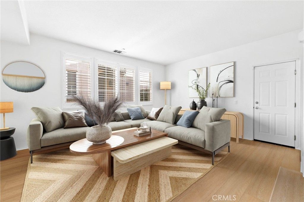 Soaring ceilings in a townhome? Rare?and this one has it. Welcome to this bright end-unit in Harvard Privado, where dramatic high ceilings create an open, airy feel you simply dont find in most townhomes. 3 beds, 2.5 baths, ~1,540 sqft with no neighbor on one side and abundant natural light throughout. Located directly across from the community pool, adding both convenience and an open view. Flexible bonus space on the first floor?perfect for an office, dining area, or easily converted into an additional room. Freshly updated with new flooring, new paint, modern light fixtures, plus brand-new microwave & dishwasher?move-in ready. Low 1.1% tax rate + low HOA with water & trash included. Prime location near Ontario Mills, shopping, dining, parks, and major freeways. Some photos virtually staged.