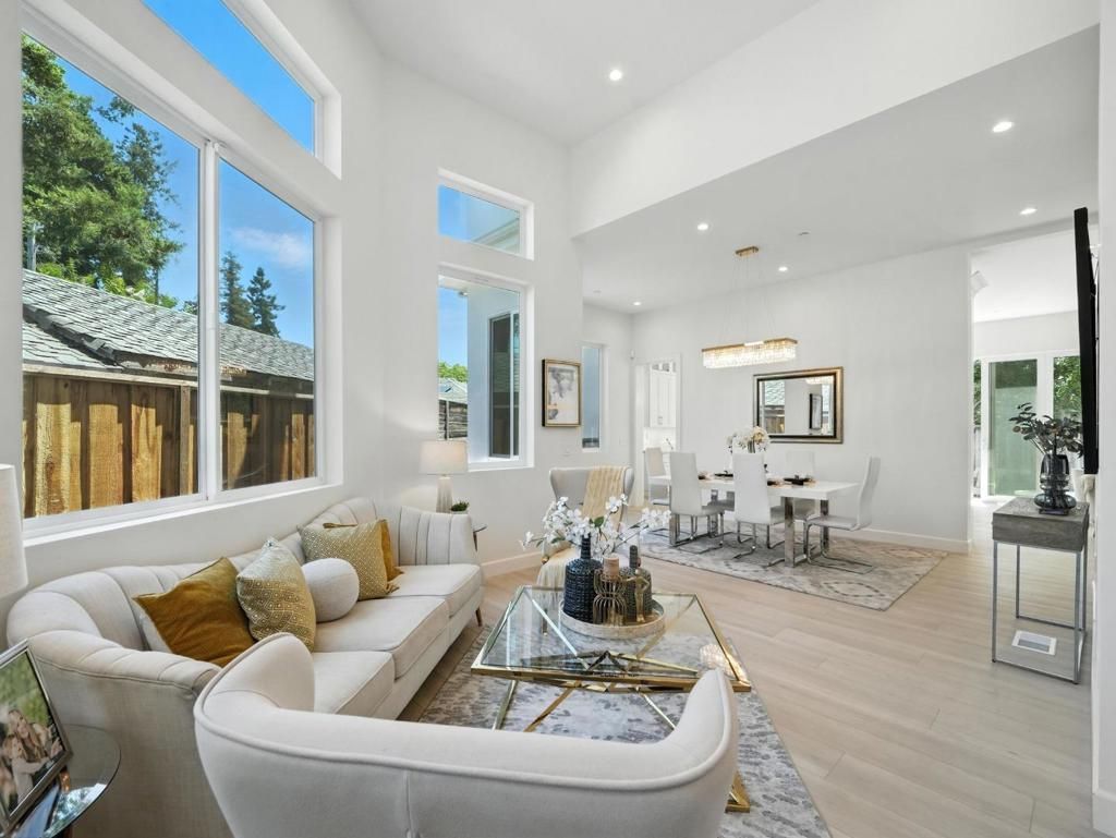 Welcome to this beautifully designed 2 story brand-new custom home, completed in 2025 and situated on a spacious 10,000+ sq ft lot with 4 bedrooms, 3 with walk-in closets, and 4.5 baths. Primary suite featuring an attached office or nursery, this home offers versatility and space. It also includes one dedicated office room, one bedroom and 1.5 bathtooms at the main level with soaring 14 ft ceilings at the entrance, plenty of glass windows that flood the interior with natural light.The gourmet kitchen is equipped with Sub-Zero and Thermador appliances, an oversized quartz island, custom build high cabinets, and a walk-in pantry. Craftsmanship shines through in the custom iron front door, premium cabinetry, and tall modern interior doors. The landscaped yard features a drip irrigation system, new flower beds, privacy hedges, a backyard sink, new redwood fencing.A Barcelona paver on long driveway, sliding gate and separate pedestrian entry add security, privacy and curb appeal. A 220V Tesla/EV-ready outlet is also installed.Enjoy year-round comfort with dual-zone AC and heating, and a prime location just 15 minutes from Apple, Nvidia, and top shopping, dinning and entertainment at Santana Row and Valley Fair.