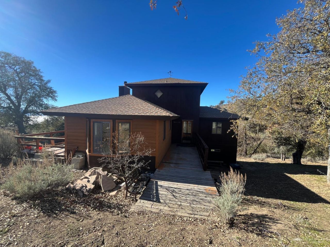 Ready for your finishing touches! This Charming Mountain cabin tucked away on a cul-de-sac in Highly desirable neighborhood of Bear Valley Springs California is private and secluded with panoramic vistas overlooking the valleys and surrounding mountains. The home has 3-Bedroom, 3-Bathrooms. The main floor features: A cozy living room complete with a wood-burning fireplace, exposed wood beams throughout the home, kitchen that includes a spacious bar and dining area. One bedroom and a 1/2 bathroom. Step outside to a spacious deck accessible from the kitchen and living room slider, offering a beautiful relaxing space for entertaining or enjoying your morning coffee while taking in the breathtaking views. Upstairs: The master bedroom suite is the entire upstairs and boasts a walk-in closet an ensuite bathroom, along with a private deck and large windows that flood the space with natural light and stunning views. Downstairs: Youll find a game room or bonus room equipped with a laundry area, with another bedroom and bathroom.The home comes with luxury tile flooring and some building materials. The house needs flooring throughout. The owners were in the process of repairing the siding, painting, patching walls and a hole in the ceiling, but they have decided to list the home instead as is life has taken them in another direction and their plans have changed. The home is ready to make it your own! The home has a new roof and has been inspected recently and was estimated to be around 4-6 years old.The heating system has been inspected and is in good working condition. The owners have contact information for a very reasonable bid to install siding to the home where needed and paint the house and trim.Plumbing is in good working order and no problems with the septic system.Please, Watch your step!!!Use caution when walking the property.Do not go out on the top deck there are no railings.This is a CASH only sale AS IS. The Sellers are firm on the price but will consider reasonable offers. Warning!! The home has good bones and needs some TLC probably not something for an investor that is looking for a flip resale.