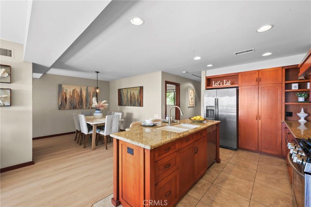 Remodeled with the highest quality of designer amenities, this elegant town home is located in the gated community of Laguna Ocean Vista. This spacious town home has an open floor plan which includes an open kitchen w/ a large center island, granite countertops, stainless steel appliances, including refrigerator & beautiful custom cabinets that open into the living room w/a fireplace and a built-in bookcase. Additionally, there is a wall of windows and sliding glass doors that lead out to an outside OCEAN VIEW deck. The formal dining area is open to the kitchen, which lends itself to easy entertaining. On the same level is an office or 3rd bedroom with a full bath, that also serves as a powder room. The large master suite includes brand new carpeting, a sitting area and a great walk-in closet. The master bathroom has newer cabinets, newer granite countertops, designer sink & a granite tiled shower over the tub. The second master suite also has brand new carpet, a walk-in closet & a private bath w/a shower/tub combo, plus hillside views! The attached 2-car garage w/direct access has a large storage area or can be an office, craft room or exercise room, and washer/dryer hookups. There is also a formal entry on the mid-level of the unit and most windows are newer with dual panes. In addition to all this, there is a community pool & clubhouse, the pool is located in a serene location right at the canyon's edge with views of Aliso Beach. The location is on the hill just above the world-famous Montage Resort, the shopping center & numerous restaurants, there are amazing views!!
