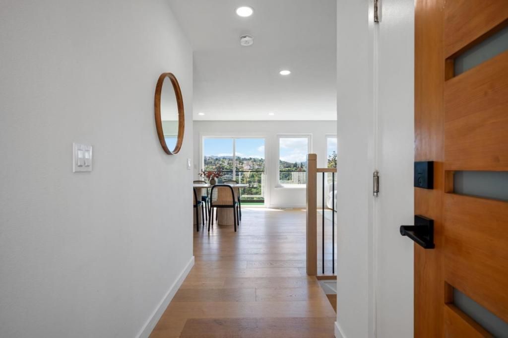 Nestled in the coveted Belmont Hills, this upgraded 4-bed, 3-bath single-family home offers a thoughtfully designed layout with stunning panoramic views of the San Francisco Peninsula. The main level features an expansive great room and gourmet kitchen with designer cabinetry, dramatic countertops, and a generous island all bathed in natural light through picture windows. A glass-railed balcony offers spectacular mountain views. A bedroom and full bath complete this level, ideal for a home office or guest suite. The lower level hosts three bedrooms, including a primary suite with a private balcony with unobstructed views, plus a dedicated laundry room and ample storage. Outside, a spacious deck anchors the landscaped backyard perfect for al fresco dining and entertaining. The unfinished basement offers three painted and floored rooms, ideal for a gym, office, or ADU conversion a rare opportunity. Refined front yard landscaping and a two-car attached garage complete the package. Steps from top-rated Carlmont High School and minutes from downtown Belmont, Caltrain, and major commute corridors hillside living at its finest. Don't miss your chance to make one of Belmont's most exceptional homes your own!