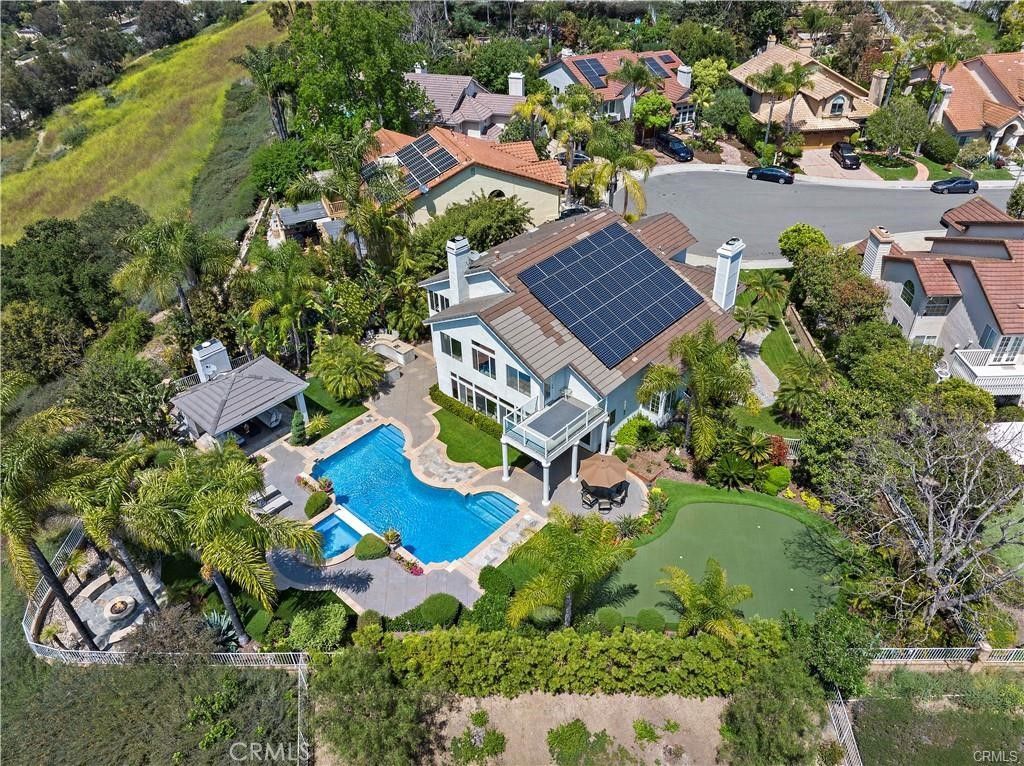 Located in the highly sought-after community of Moulton Ranch is a gorgeous, fully furnished end-of-cul-de-sac view home that has it all! The ideal property for indoor/outdoor living & entertaining. It has been remodeled & customized both inside and out. The home features a dramatic dual-iron staircase entry with vaulted ceilings, leading into a formal living room & dining room. The home offers one bedroom and bathroom downstairs and three bedrooms and two baths upstairs. The master suite features a walk-in closet, an office/den, a sitting area with a fireplace, and a separate shower/jet tub for two. Granite countertops in all bathrooms. Amenities include a large family room with a walk-behind bar that opens to a chef's kitchen with a large center island, granite counters, double ovens, a built-in refrigerator, extra pantry storage, and a five-burner gas stove-top. There are custom-built-in cabinets in the family room and breakfast room. The backyard features a beautiful pool, spa, putting green, and a built-in BBQ with seating. Enjoy the outdoor room with a fireplace and TV located at the back of the property overlooking a fire ring with seating. This home offers privacy, views, and resort-quality features.