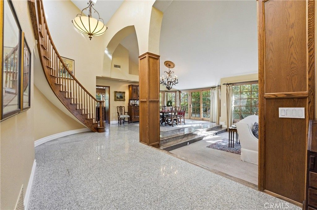 Nellie Gail Ranch, one of the best locations in South Orange County. This pristine home combines elegance and comfort and features a Resort like back yard with a Sparkling Pool. Perfect home for entertaining family and friends. As you enter this home, you'll be in awe with the open floor plan and Sweeping Spiral Staircase. The Main Floor Bedroom and full Bath are perfect for guests or in-laws, currently being used as an Office. The Formal Living Room with Fireplace next to the Formal Dining Room with French Doors that open to the beautiful Side Yard. Now, for the discerning Chef in the house, enjoy the Gourmet Kitchen, featuring a Center Island with Stainless Steel Appliances, Granite Counters, Tumbled Stone full Backsplash. You will enjoy the Breakfast Nook overlooking the Pool and Backyard. Large Sunken Family Room with a cozy Fireplace and Large Built-in Entertainment Center. The Second Floor takes you to the Oversized Primary Bedroom with the High Cathedral Ceilings. The spacious room invites you to the Fireplace and Sitting Room which opens to the Wrap-around Balcony where you enjoy the beautiful sunsets and the view. The Primary bathroom is so inviting with the free-standing Soaking Bathtub. A Travertine Shower with a Wrapped Glass Enclosure, Dual Vanity with Travertine Countertop. The Custom Granite Tiled Flooring make this room a real treat. The beautifully Designed and Manicured Back Yard with the Pool and Spa, so much to enjoy in this home.