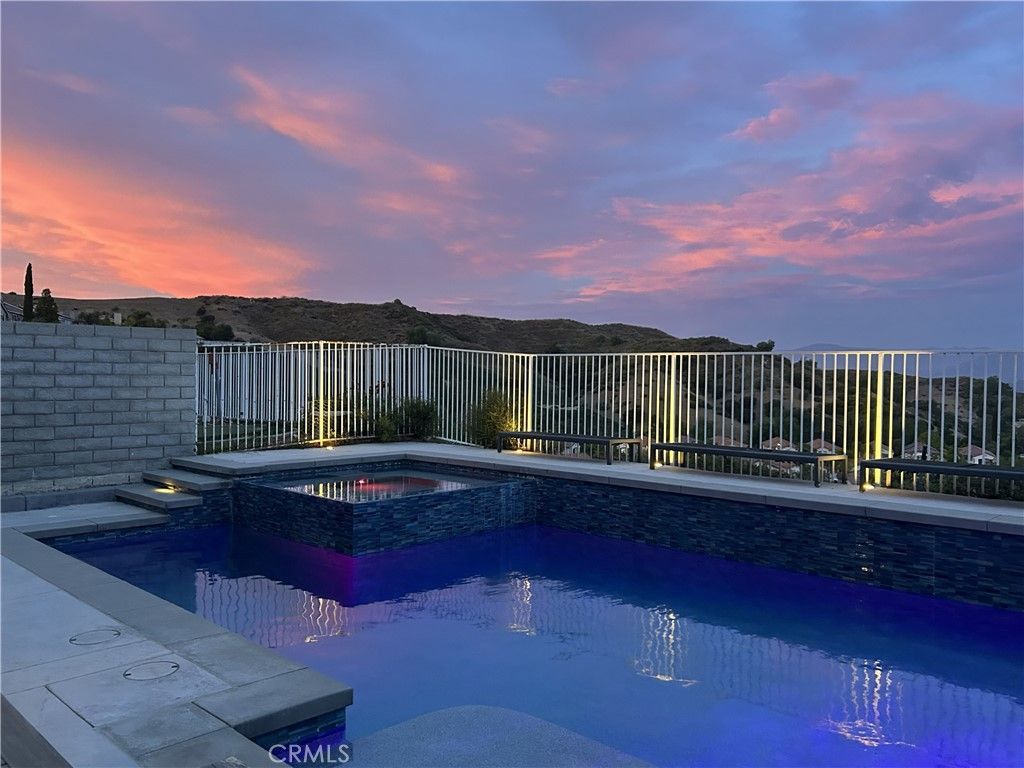 Welcome to your dream home in the heart of Stevenson Ranch. This beautifully designed two-story residence offers 4 spacious bedrooms and 2.5 baths, including a convenient main-floor bedroom ideal for guests or a home office. From the moment you enter, soaring vaulted ceilings and a grand staircase create an inviting sense of elegance and space. The home features an immaculate open-concept living area with a formal dining room, a cozy family room with a masonry fireplace, and elegant travertine tile flooring. The gourmet kitchen is a true showstopper, complete with Caesarstone countertops, a large center island, gas cooktop, dual ovens, and ample cabinetry?perfect for entertaining or everyday living. Enjoy breathtaking panoramic views of the Santa Clarita Valley from the kitchen, dining area, family room, and the luxurious master suite. Upstairs, youll find three generously sized bedrooms, including a stunning primary suite with sloped ceilings, a private balcony, and a spacious ensuite bath featuring dual vanities, a soaking tub, and a separate shower. Step outside to your private backyard oasis, designed for both relaxation and entertaining. Take in the valley views while enjoying the sparkling pool and spa, concrete patio, and low-maintenance artificial turf?perfect for year-round enjoyment. Additional highlights include solar power, whole-house water filtration, a two-car garage, low HOA, and location within the highly sought-after William S. Hart School District. Ideally situated close to shopping, dining, parks, and easy freeway access, this pristine view home is located in one of Stevenson Ranchs most desirable neighborhoods. With exceptional space, views, and value, this home is not to be missed?schedule your private showing today before its gone.