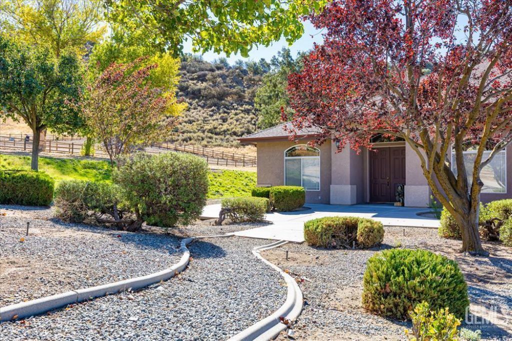 Your Mountain Sanctuary! Welcome to this mountain retreat in Bear Valley Springs! This 3BD/2.5BA, 2,861 SF home on 3.43 acres blends comfort and country elegance. A welcoming foyer with graceful archways opens to an office and formal dining room. The spacious open-concept living area features custom built-ins, a tiled hearth, and pellet stove. The kitchen boasts granite counters, stainless appliances, dual-drawer dishwasher, breakfast nook, walk-in pantry, and eat-at island with sink. Split-wing layout offers two bedrooms and full bath on one side, with a primary suite on the other with patio access, soaking tub, dual vanities, and walk-in closet. Enjoy the covered patios mountain views, horse-friendly acreage, and nearby trails. Detached single-car garage with workshop, oversized 3-car garage, RV parking, central A/C, generator connection, and new LVP flooring throughout complete this exceptional property. Come for a visit and see why its not just a home, its a lifestyle.