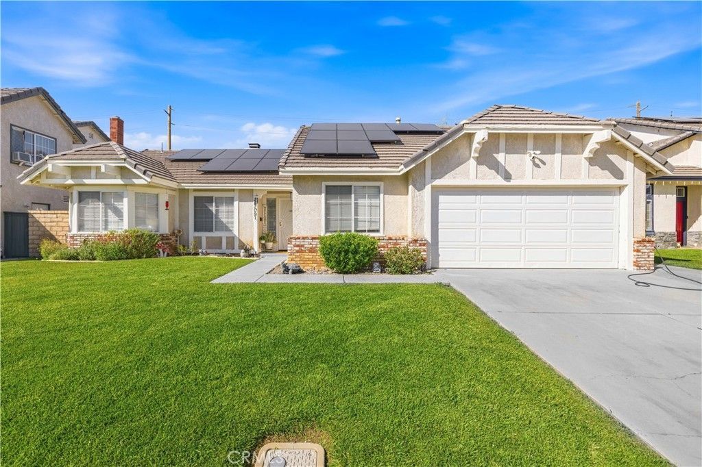 BEAUTIFUL POOL HOME IN WEST PALMDALE! Welcome to this well-maintained and updated 3+2 home with a bonus office/den. Offering over 2000 sqft of single-story living, this home features an open floor plan with vaulted ceilings that create a spacious and inviting atmosphere throughout. All bedrooms are spacious including a primary suite with sliding door access to the beautiful backyard. Both family and living room open the backyard, making the home ideal for entertaining and indoor-outdoor living. Step outside to your retreat- like pool with plenty space for BBQs, gatherings and relaxing with family and friends. Additional highlights include an solar panels, indoor laundry room, ample storage and a well-sized yard ready to enjoy the beautiful Palmdale spring and summer nights. Located close to major shopping, dinning and everyday conveniences.