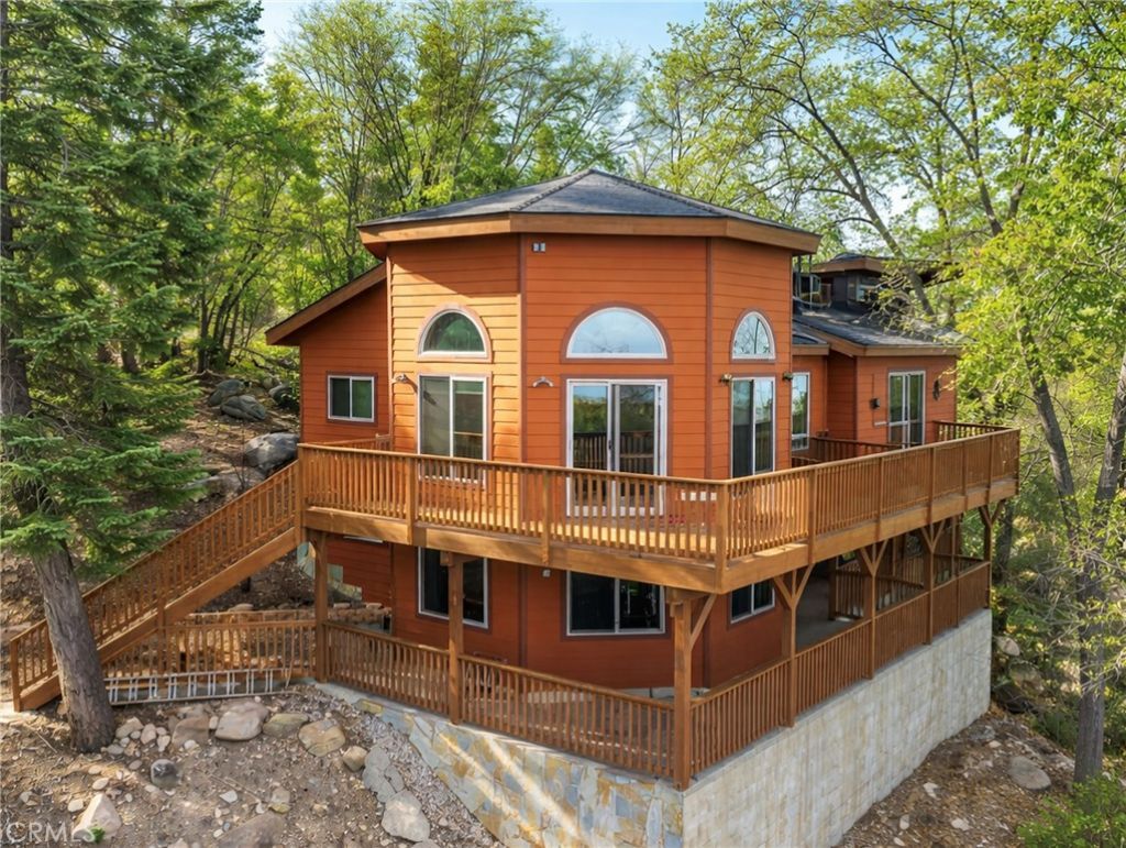 Extraordinary mountain retreat with breathtaking views, just minutes from Green Valley Lake. This thoughtfully designed home offers a flexible floor plan ideal for multigenerational living or rental use. Built with fire-resistant concrete siding and featuring interior sprinkler system, the property offers added peace of mind in a mountain setting. The all-electric home is well insulated for year-round comfort, with no gas or propane to maintain. The kitchen is a true standout with a commercial pizza oven, perfect for entertaining and creating a warm gathering space. Surrounded by thousands of acres of forest and nearby trail access, this property blends rustic cabin charm with modern, energy-efficient sensibilities. Centrally located between Lake Arrowhead and Big Bear, enjoy easy access to skiing, snow play, boating, hiking, dining, and mountain events year-round. Voluntary HOA offers reduced lake access and fishing privileges.