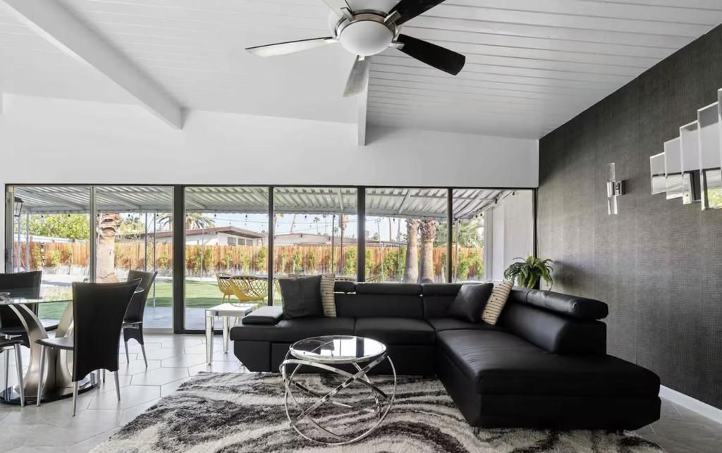 Now available for seasonal or long-term lease (currently all dates are available) , this move-in-ready 3-bedroom, 2-bathroom Marilyn-themed Palm Springs home comfortably accommodates up to six guests and offers a fun, family- and pet-friendly stay without the worry of a pool. The open living area features a fully stocked kitchen and a bright living room overlooking the spacious backyard. The primary suite includes a king bed and private bath, while two additional bedrooms offer queen beds and share a guest bath. Enjoy the large private backyard with lawn games and a ping pong table, plus garage access for convenience. Centrally located near shopping, dining, and downtown Palm Springs. Pets are welcome