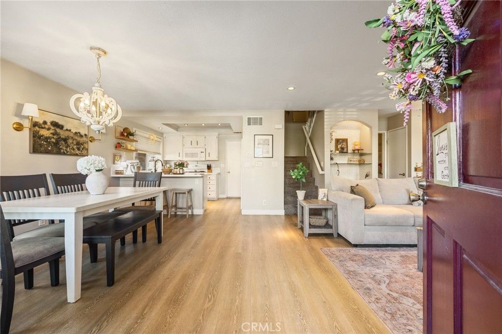 Welcome to this beautifully updated 2 bedroom, 3 bathroom condo offering 1,131 square feet of comfortable living in the heart of Santa Clarita and located within a top rated school district. From the moment you step inside, youll appreciate the open floor plan, light wood laminate flooring, recessed lighting, and a welcoming living space centered around a cozy wood burning fireplace. The kitchen is a true highlight, featuring newer quartz countertops, a large fixed island with bar seating, a farmhouse style sink with a sleek modern faucet, updated cabinetry with stylish hardware, and a newer dishwasher. Built-ins overlook the family room, adding both character and functionality to the space. A convenient half bath is located downstairs, making it perfect for guests and everyday living. Upstairs, youll find two spacious primary suites, each with vaulted ceilings that create an open and airy feel. The primary bedroom offers a generously sized walk-in closet, while both bedrooms provide ample space and privacy, making this layout ideal for first-time buyers, roommates, or anyone looking for flexible living options. Additional features include in-unit laundry located in the attached two car garage, a newer water heater, updated flooring, and central heating and air conditioning. The garage offers direct access, adding both convenience and storage. The gated community offers a pool and jacuzzi, and the location provides close proximity to restaurants, coffee shops, parks, and everyday conveniences. This move-in ready home combines comfort, style, and location in one of Santa Claritas most desirable areas.