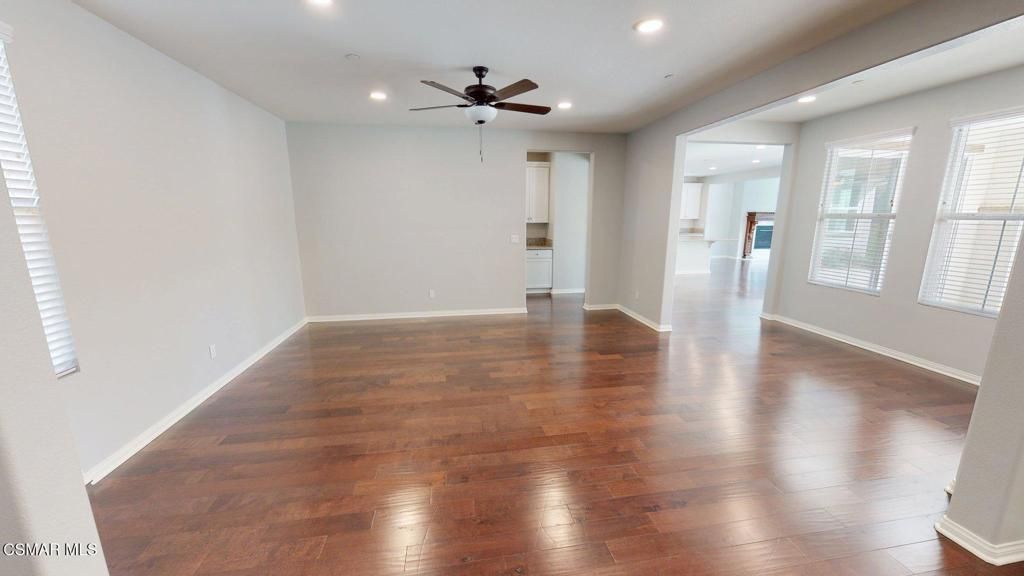 Located at the end of a cul-de-sac in desirable Simi Valley, this beautiful single-story home offers space, comfort, and exceptional indoor-outdoor living. Wood flooring flows throughout the expansive living areas, creating a warm and inviting atmosphere. The open-concept kitchen is a true centerpiece, featuring an oversized granite island, abundant counter space, and stainless steel appliances by GE Appliances. The kitchen opens seamlessly to the spacious family room with a custom fireplace, perfect for everyday living and entertaining. Additional highlights include a Butler's pantry, a large walk-in pantry, and an oversized indoor laundry room with extra storage. Privately situated on one side of the home, the generous primary suite features a spa-like bathroom with dual sinks, a large soaking tub, a separate shower, and an expansive walk-in closet with custom-built-in cabinetry and cedar-lined finishes. Down the hallway, you'll find three additional well-sized bedrooms, two with walk-in closets and one with custom built-ins, along with two additional full bathrooms, offering flexibility for family, guests, or home office space. The property also includes solar assistance, a three-car attached garage, and an expansive, flat 18,000+ square foot lot ideal for entertaining, gardening, or creating your dream backyard retreat. Conveniently located near award-winning schools, parks, shopping, dining, and freeway access, this home truly offers the best of comfort, functionality, and location.