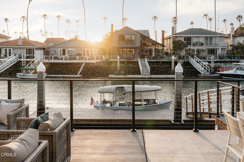 Exceptional waterfront home offering refined coastal living in the heart of the Ventura Keys. This four bedroom, three bath residence plus bonus room has been thoughtfully updated throughout.The first level features an open kitchen, dining, and living area filled with natural light and oriented toward the water. Engineered French oak flooring and rift sawn white oak cabinetry set a warm, modern tone, while new windows and doors create seamless access to the expansive waterside patio. The first level also includes a bedroom and full bath, indoor laundry, and direct access to the attached two car garage.Upstairs, the home offers three additional bedrooms, including the primary suite with an oversized walk in closet. A dedicated bonus room provides flexible space for a home office, media room, or additional lounge area.Outdoor living is a standout feature, with a generous patio and fire pit overlooking the channel and a private 35 foot boat dock. Additional upgrades include a new roof and new HVAC system.The voluntary homeowners association offers access to two private beaches, pickleball courts, a basketball court, and community barbecues. A turnkey waterfront opportunity combining modern updates, generous outdoor space, and one of Ventura's most desirable coastal neighborhoods.