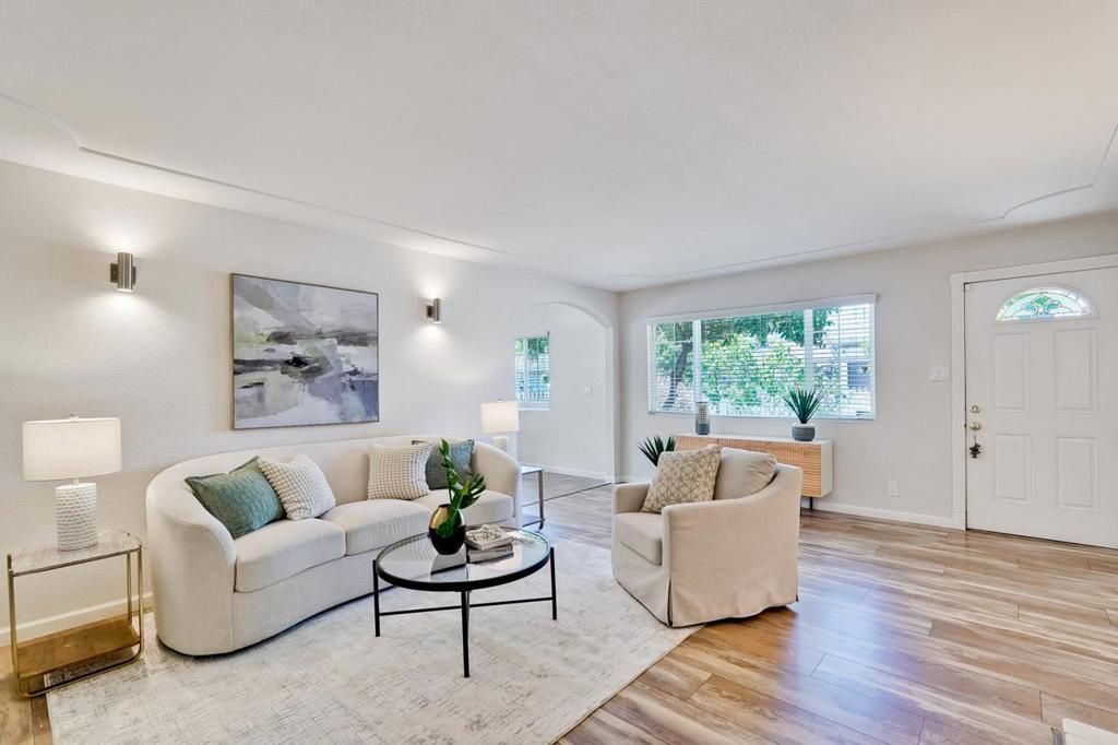 Welcome to this nicely appointed, single-story, four-bedroom, 2-bathroom home with an attached garage in San Jose's Cambrian Park neighborhood. This inviting residence seamlessly blends comfort and functionality. The modern kitchen features granite countertops, stainless steel appliances (including a microwave and dishwasher), a gas range, and recessed lighting, with direct access to the backyard. The interior is finished with durable vinyl plank and linoleum flooring throughout, complemented by forced air heating and PG&E solar panels for enhanced energy efficiency. The front yard includes drought tolerant plants and an amazing citrus tree. The backyard has a nice grassy space with a covered patio, a tool shed, and even a chicken coop. Come see this newly unoccupied gem in Cambrian Park!