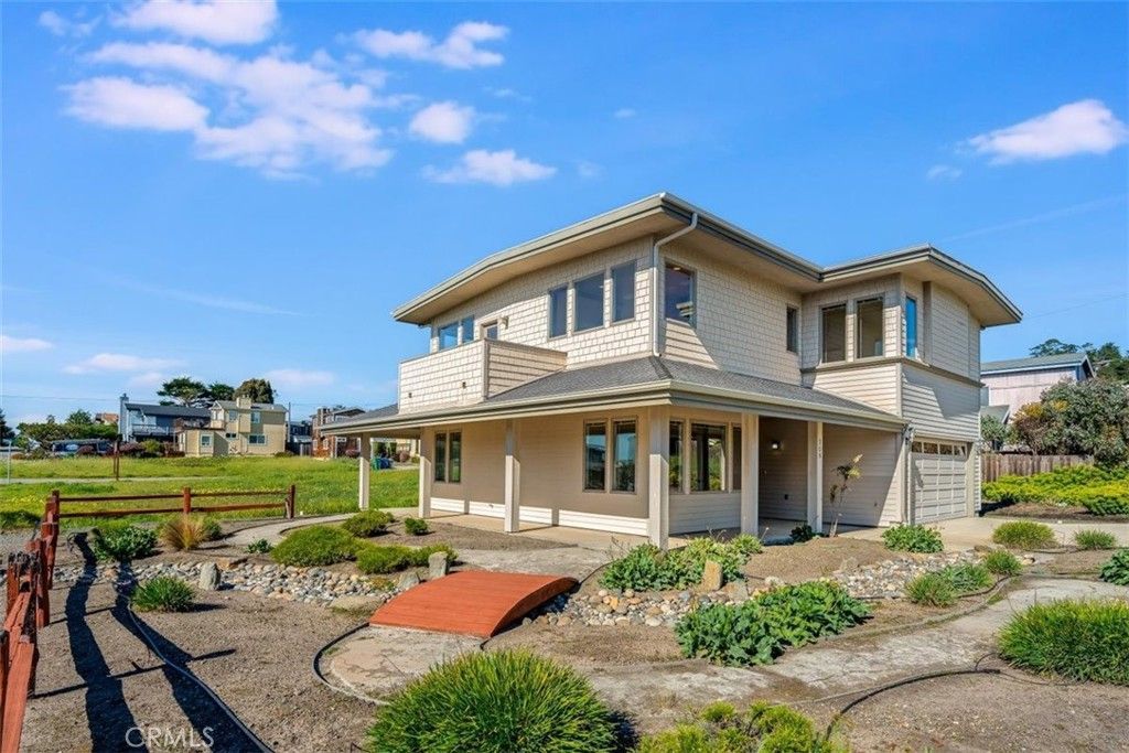 Coastal living at its best in the desirable Marine Terrace neighborhood, just steps to beach access. Built in 2005 and thoughtfully designed for the Central Coast climate, this beautifully crafted home sits on a corner lot and offers approximately 2,303 sq. ft. of living space. The flexible floor plan includes 3 bedrooms, a study/office, and 3.5 bathrooms. The main level features a private secondary bedroom suite with exterior access, an additional bedroom, study/office, hall bath, and interior laundry. The upper level offers the primary suite along with the main living areas, including the kitchen, dining room, living room, powder room, and access to an exterior deck ideal for enjoying the coastal air. The kitchen features natural birch cabinetry, granite countertops, Dacor stainless appliances, Grohe faucet, Kohler chefs sink, prep sink, and pantry. Quality craftsmanship throughout includes Andersen casement windows, durable Hardie board siding and shingles, solid core interior doors, and Emtek burnished bronze hardware. Interior finishes include maple hardwood floors in the foyer, stairway, upper hall, powder room, dining room, and kitchen, crown molding in downstairs bedrooms, tile bathroom floors, and carpeted bedrooms. A well-built coastal home offering comfort, craftsmanship, and a prime location near the scenic Fiscalini Preserve nature trails and the stunning Cambria coastline.