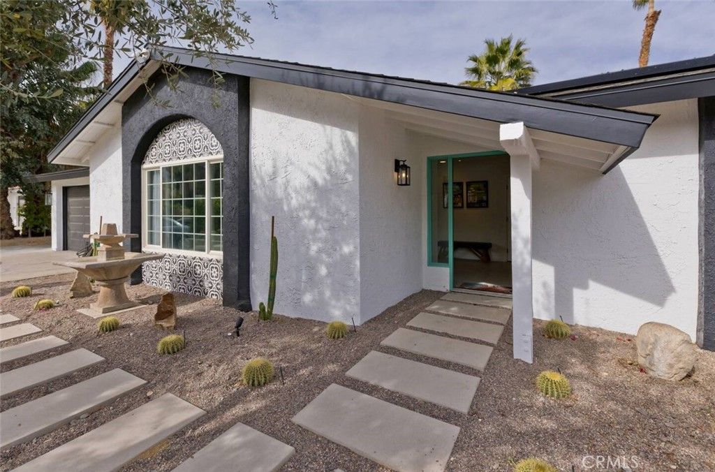 short term rental or Monthly! Summer rates will be around $4000.00 per month, Winter months around $15000.00 / $18000.00 Welcome to Escoba Ranch, a fully remodeled and spacious three-bedroom home located just minutes from downtown Palm Springs and the Palm Springs International Airport with a massive private yard. Our large and private corner lot offers stunning views of the San Jacinto Mountains, accompanied by a salt water pool and jacuzzi, a 45-foot covered patio, a citrus orchard, a fire pit lounge, an outdoor shower, dual garage (with AV charger) all surrounded by a variety of palm trees, cacti, and desert flowers. Interior Highlights: This home is fully furnished! The open floor plan living and dining area features a 75-inch TV, a cozy fireplace, and an extra-large dining room that opens to the outdoor living area. The well-appointed kitchen is equipped with all the amenities needed to entertain and enjoy your stay in Palm Springs. Location Situated in the Los Compadres neighborhood of southeast Palm Springs?well south of the wind zone?Rancho Vista Del Sol provides quick access to the city's vibrant heart, including its restaurants, museums, shops, and galleries. We are conveniently located on the new Palm Springs CV Link (Coachella Valley bike path) and are just minutes away from the Prescott Nature Preserve, dog parks, and the Araby trail system, which leads to the famous Bob Hope House and beyond. Primary Suite: The luxurious primary bedroom serves as a private oasis, featuring a plush king-size bed with a beautiful wood headboard. A large sliding glass door allows natural light to illuminate the rich terrazzo floors and sleek mid-century modern furnishings. Additionally, there is a large-screen smart TV that can be neatly tucked away when not in use. A spacious closet provides ample storage, while the en-suite bathroom boasts a dual vanity with quartz countertops and an oversized walk-in shower complete with a rainfall showerhead and designer tile work. Second Bedroom: It features a queen-size bed, restored mid-century nightstands, and a large 65-inch TV. A large window frames picturesque mountain views, ensuring guests wake up to stunning desert landscapes. A well-appointed closet and stylish accent lighting round out this comfortable space. Third Bedroom: . Decorated with subtle mid-century modern touches and European wallpaper, this space combines practicality and style through soft textiles, fun wall treatments, and ample storage.
