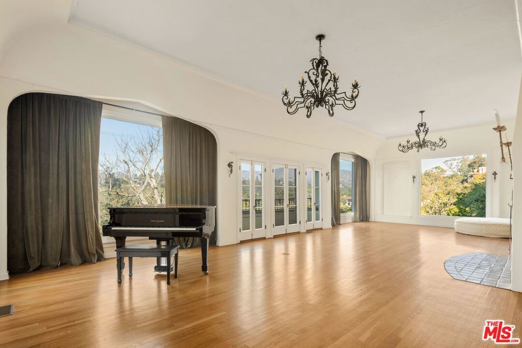 Wonderful opportunity to live in one of the original Uplifters Ranch houses built in 1927. Coddled amongst mature California Oaks, this three level, spacious half-timbered stucco house is placed near the top of the Rustic Canyon rim embracing canyon views from most rooms. When entering the front door one experiences the most impressive ballroom like living room, ordained with a hotel scale fireplace, hardwood and floor to ceiling windows making the ascent worthwhile. The main level also includes the formal dining room, a modern kitchen and office leading all embracing the outdoor gardens. The upper level has three bedrooms and two baths all facing canyon views, including a comfortable main bedroom suite. The lower level with the original unique basement bar and circular card room is part of a family room and is attached to two bedrooms and a bath, potentially can be used as a separate apartment with its own entrance. A two car garage is located at the street level. The house is in the heart of Rustic Canyon adjacent to the Rustic Canyon Park.
