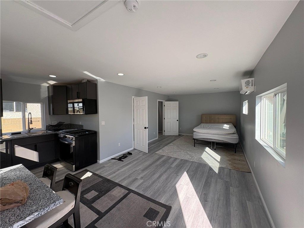 Brand-new 2025 fully permitted JADU offering a studio unit with 1 bathroom in a private, quiet setting. This thoughtfully designed studio features new stainless steel appliances, modern countertops, new cabinetry, and sleek glass-enclosed shower doors. Enjoy the convenience of a dedicated indoor laundry with a built-in washer and dryer. Located at the rear of the lot, the unit provides enhanced privacy along with a separate side-gate entrance and private walkway. The front home tenant uses the garage and driveway; street parking is readily available in front of the property.