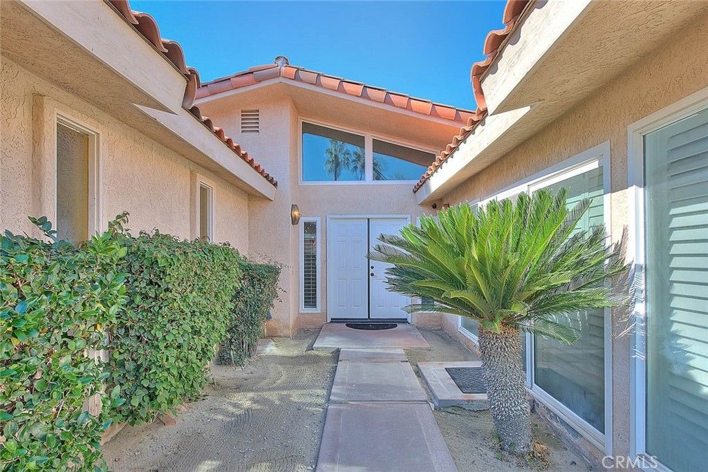Welcome to resort style living! This Charming desert home is a must see!!! It's Immaculate and move in ready! This exquisite single-story, three-bedroom spacious home, is on a cul-de-sac that and is located in the highly desirable Rancho Village community in Cathedral City. Upon entering the home, you will be delighted by the elegant, grand and spacious open concept great room with a living room, a dining room, a family room and kitchen. The home has stunning high Vaulted ceilings and recess lighting. There are also many elegant windows throughout the house, all with crisp white plantation shutters that let in a lot of natural light. The entire home has been freshly painted and has new neutral colored laminate flooring throughout. There are three large bedrooms that each have their own private bathroom. The spacious backyard has a lovely private pool, a covered patio and plenty of space to entertain friends or just relax. This Charming gated community borders the city of Rancho Mirage, close to all the great shopping, restaurants and golf courses. The grounds in this community are so beautifully maintained. There is an elegant newly renovated clubhouse, a grand main community pool, beautiful tennis and pickleball courts. It's a lovely home to make your own.