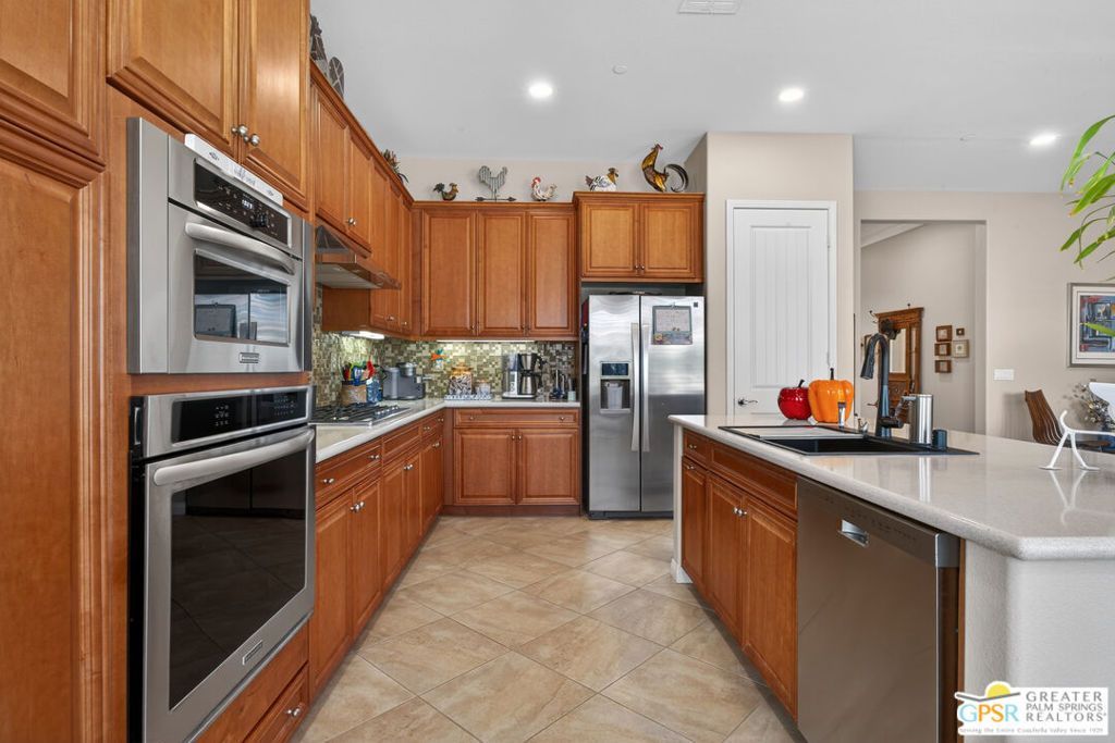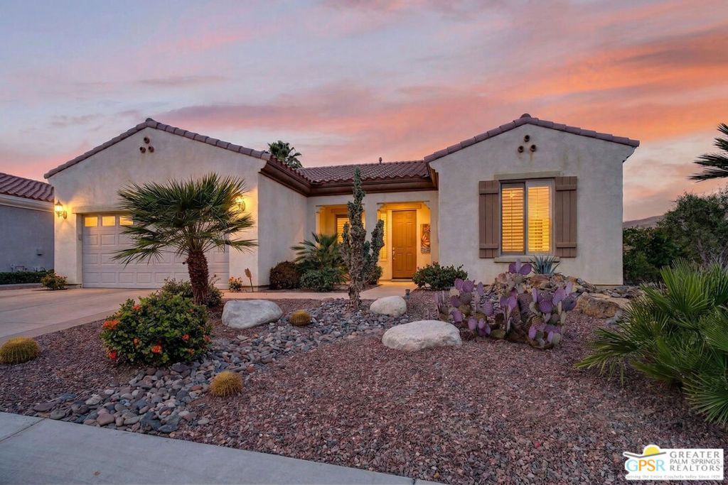 Welcome to elevated desert living in the highly desirable 55+ community of Sun City Shadow Hills where resort-style amenities and an active adult lifestyle come together. This beautifully upgraded 3-bedroom, 2-bath home offers 1,756 sq ft of open-concept living designed for comfort, ease, and entertaining. Tile flooring throughout common areas provides a clean, low-maintenance environment, while the upgraded kitchen features stainless steel appliances, modern cabinetry, and enhanced countertops with a stylish backsplash perfect for hosting friends or enjoying quiet evenings at home. The spacious primary suite offers a peaceful retreat, with additional bedrooms ideal for guests, hobbies, or a home office giving you the flexibility to live the lifestyle you've been looking for. Step outside and experience your own private backyard oasis. The oversized corner lot gives you an expanded side yard and a deeper backyard designed to maximize outdoor living! Relax by the tranquil water feature or enjoy the spool ideal for cooling off during warm desert days or unwinding under the evening sky. Thoughtfully designed for pet owners, the home also includes an electronic pet door and a fenced pet area with artificial grass, offering convenience and a safe, low-maintenance space for your pets. Living in Sun City Shadow Hills means access to world-class amenities designed for an active 55+ lifestyle, including championship golf courses, resort-style pools and spas, indoor lap pool, state-of-the-art fitness centers, and tennis, pickleball, and bocce courts. Enjoy a vibrant social calendar with clubs, classes, concerts, and events, along with walking paths, on-site dining, and beautifully maintained grounds.Whether you're seeking a full-time residence or a seasonal retreat, this home offers the perfect blend of comfort, convenience, and community just minutes from shopping, dining, and all that the Coachella Valley has to offer. Experience the best of active adult living in one of the desert's premier communities.