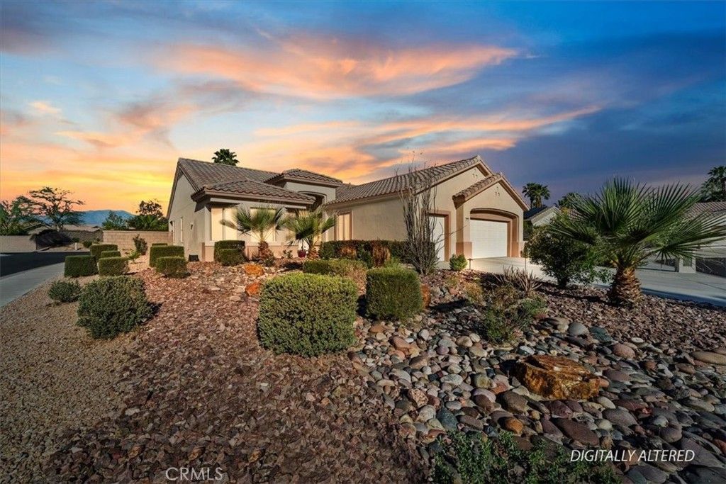 Located in the highly coveted, beautiful Del Webb community of Sun City Palm Desert this sought after Saint Croix plan sits on one of the largest and most desirable corner lots in the community. Step inside through the tiled foyer that opens to a spacious great room filled with natural light, perfectly connected to the adjacent formal dining area. The kitchen is a chefs delight, featuring solid surface countertops, a convenient breakfast peninsula, and a center island prep station. A bright breakfast nook provides the ideal spot to enjoy your morning coffee. This versatile layout offers three bedrooms, or two bedrooms plus a den, and is uniquely enhanced by the addition of a separate bonus room with both interior access and direct entry from the garage?perfect for guests, hobbies, a studio, or private office space. The generous primary suite easily accommodates a large furniture set and includes room for a comfortable sitting area. The ensuite bath features dual sinks and a walk-in shower. Outdoor living is just as inviting with both a covered patio and an extended uncovered patio, ideal for entertaining. The backyard is beautifully framed by a flowering perimeter hedge and offers a rare opportunity to design your own outdoor oasis with space for a private pool, fire pit, game area, and more. Additional highlights include a two-car garage plus dedicated golf cart parking. Residents of Sun City Palm Desert enjoy resort-style living with incredible amenities including golf courses, lakes, waterfalls, swimming pools, clubhouses, restaurants, a library, technology center, bocce ball, tennis and sports courts, a theater, ballroom, and even a fishing lake. This is truly what desert resort retirement living is all about.