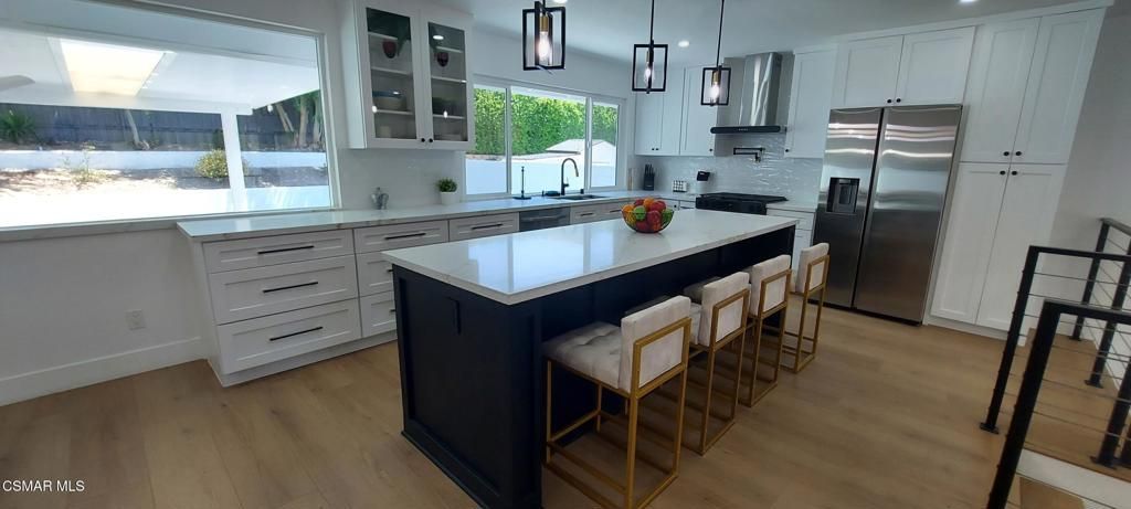 Attention Simi Valley guests. You will enjoy your stay at this beautifully remodeled 5BR Pool Home in a prime central Simi location! Great floorplan for multi generation or large family with 2 BR and a full bath downstairs and 3 large bedrooms and 2 full baths upstairs . It's thoughtfully furnished with all the amenities, 2 fireplaces and 2 big screen TV's. The rooms are all large with a great flow. Trendy yet comfortable, with high ceilings, a spacious chef's kitchen with oversized island, a family room with wet bar, and a resort-style backyard with pool, synthetic turf and built-in bbq--perfect for entertaining and enjoyment. The rooms are all large and the possibilities are endless. 3-car garage. Close to schools, shopping, parks and public services. Great neighborhood and best location in Simi Valley!