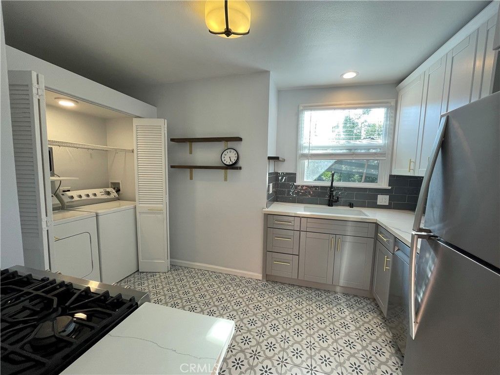 Newly remodeled! Beautiful kitchen with deco-floor tiles, quartz counters, stainless appliances, including -stove, fridge and dishwasher. Washer/dryer tiled backsplash, breakfast bar. Beautiful hardwood floors, ceiling fans, window a/c. Second bedroom has French door to massive deck and side patio with swing to relax and read by, light and bright, tons of windows -wood blinds. Walk to circle shopping, near all transportation, walk to all. Near CalState, VA, 405,605, 22