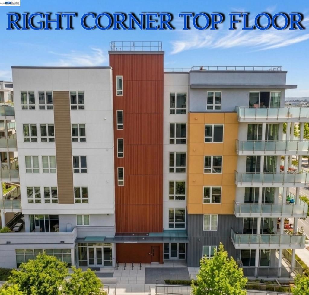 Soaring above the city, this light-filled Top floor corner penthouse showcases panoramic hillside views and a seamless indoor-outdoor lifestyle. Floor-to-ceiling windows flood the space with natural light, while the expansive wraparound balcony offers the perfect setting to relax or entertain. The open-concept design connects the kitchen, dining, and living areas, creating a spacious and inviting atmosphere. A smart split-bedroom layout ensures privacy, with a luxurious primary suite featuring a walk-in closet, dual vanities, and a large walk-in shower. A secondary suite works perfectly as an office or guest room, while the third oversized bedroom is privately positioned?ideal for extended family or visitors. Upgrades include recessed lighting, A/C, in-unit laundry, and generous storage. Two secure garage parking spaces with a community EV charger for added convenience. Community amenities include a pool, spa, fitness center, clubhouse, BBQ areas, and landscaped courtyards with walking paths. Prime location near BART, freeways, Mission Peak, shopping, dining, and major tech hubs.