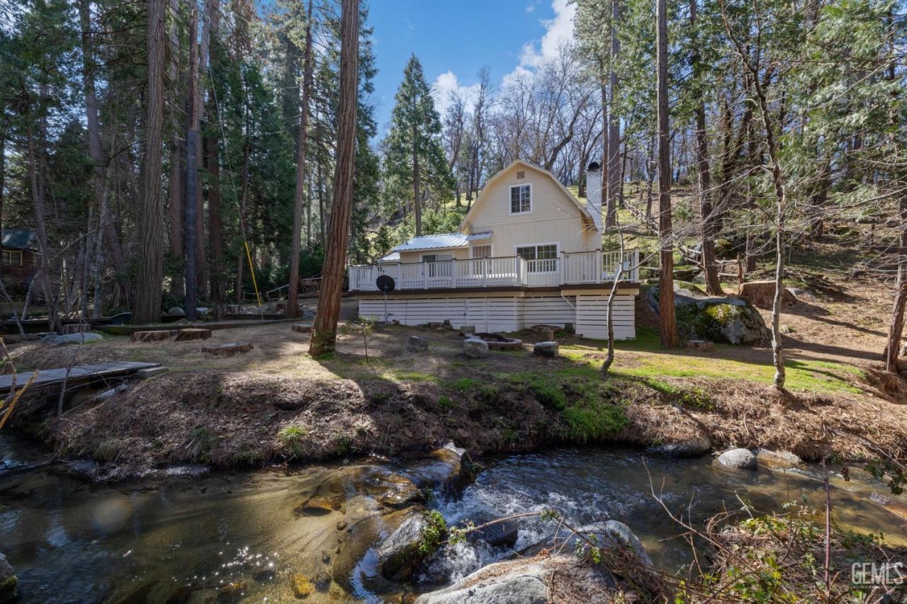 A delightful streamside cabin located in the wonderful community of Poso Park, this is the perfect escape from your busy hectic world. You will fall in love! Such a beautiful setting, nestled among the tall pines, private bridge, stairwell & foot bridge for private access. 3/4 ac., nice flat area along the creek for that evening campfire or pick your own blackberries!!! Cabin has been renovated to modernize, but has kept that unique cabin charm w/ Beautiful T&G interior. Wood was milled from the old Sugarloaf sawmill once located in the area. Large living room. Cozy fireplace, nice efficient kitchen w/sliding doors out to the over 500 sq. ft deck. w/propane fire and built-in benches. Decking & Railings Rebuilt with all-weather wood. Easy to maintain! 2 Bedrooms, 3/4 Bath has custom shower w/rock surround. Utility incl. water heater, stack washer/dryer. Outside shed for all your storage needs, Owner to leave all firewood!! Most all furnishings to stay. This will not disappoint.