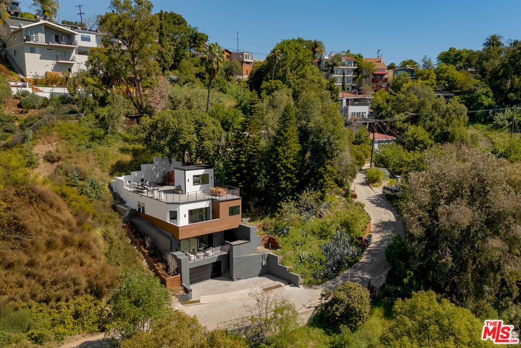 Brand new hillside construction in Mount Washington, located within the coveted Mount Washington School District. Clean lines, big views, and three levels of modern living done right. Perched above the street, this newly built 2,635-square-foot architectural residence makes an immediate impression. A sculptural staircase sets the tone upon entry, while a solid mahogany front door frames a striking indoor fireplace that anchors the living space. Milgard sliding glass doors open wide onto a tiled terrace, blurring the line between indoor and outdoor living and creating an effortless setting for entertaining, set against a backdrop of rolling hills. The kitchen and dining areas flow together over wide plank white oak floors. At the center is a chef's kitchen featuring dramatic Italian porcelain slab surfaces, a generous island for gathering, and a professional-grade Thermador appliance suite designed for both performance and style. A discreet powder room completes the main level. Upstairs are two secondary bedrooms and a full bath, along with a serene primary suite featuring a private balcony, walk-in closet, and a spa-like bathroom with a freestanding soaking tub, floating oak vanity, and large-format porcelain tile. Above it all, a sweeping rooftop deck wraps from the side of the home to the front approach, capturing layered views of hillside architecture, mature trees, and the distinctive terrain that defines Mount Washington. Wrapped in smooth stucco and modern composite cladding and thoughtfully set into the hillside, this home delivers architectural presence, privacy, and the indoor-outdoor lifestyle buyers are searching for in one of Northeast Los Angeles' most sought-after neighborhoods.