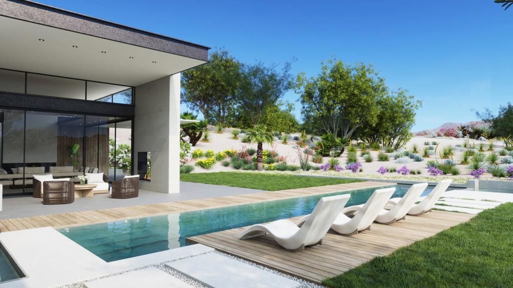 Nestled in the heart of The Quarry, this exceptional 0.51-acre elevated homesite at 58782 Banfield Drive offers sweeping panoramic views of the Santa Rosa Mountains, the valley floor, and the only Golf Digest TOP 100 course in the Coachella Valley. One of the last prominent lots in this ultra-private, guard-gated enclave, it's a rare opportunity to craft a legacy residence amid dramatic desert beauty.This shovel-ready homesite comes with HOA-approved plans from renowned architectural firm Nomos RED for a modern masterpiece of approximately 4,962 square feet of covered living space. Designed to harmonize with the surroundings, the residence features open, light-filled interiors that flow effortlessly into outdoor living areas. Highlights include a gourmet kitchen paired with a secondary back kitchen for seamless entertaining, spacious living areas anchored by a cozy fireplace, and an outdoor retreat with pool, spa, and lounge/dining spaces overlooking the celebrated Tom Fazio-designed golf course along the 4th hole.The thoughtfully planned layout features 4 bedrooms, 4.5 bathrooms, a dedicated office, and a separate casita with its own living area and bedroom, ideal for guests or extended family. A sleek garage keeps your collection secure and out of sight. Every detail embraces contemporary luxury while capturing the essence of desert living.Prefer your own vision? Start fresh. Act now and complete your custom home for next season. The listing agent can introduce you to one of The Quarry's premier builders who offers a streamlined process from design to delivery, ensuring every detail is not missed.Just a swift 12-minute drive to the Thermal Club's private racetrack and the Desert International Horse Park. Reach out today to explore the plans, a private introduction to the esteemed builder, and secure your place in this exclusive desert sanctuary.