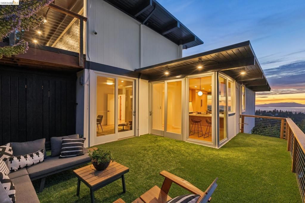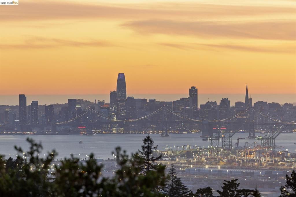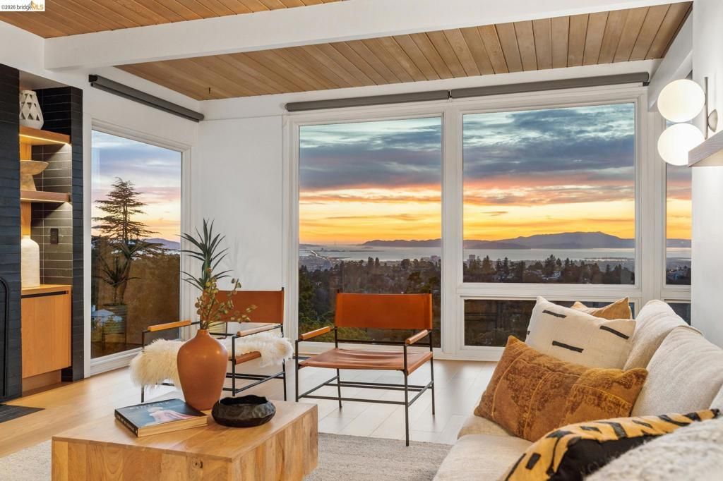 Surrounded by nature yet minutes from Montclair Village, this home offers a rare blend of refined design, thoughtful engineering, and breathtaking natural beauty with panoramic views spanning three iconic Bay Area bridges. Walls of windows frame ever-changing light and unforgettable sweeping views and sunsets. Extensively transformed in 2021, this home was crafted with a designers eye to honor the spirit of a mid-century home while making it feel timeless, warm, and livable for everyday life. At the heart of the home is a truly stunning kitchen, featuring custom millwork cabinetry, leathered Taj Mahal quartzite, and a full suite of Miele appliances, from convection and speed ovens to a chef-grade gas cooktop. Sculptural Flos IC lighting casts a soft, gallery-like glow, elevating both everyday living and evening gatherings. The primary suite offers a luxurious spa-like retreat with a sculptural soaking tub, zellige tile, Taj Mahal quartzite surfaces, and a Toto Washlet, bringing elevated comfort into daily life. Throughout the home, wood flooring creates warmth and continuity, complemented by curated lighting and thoughtfully integrated built-ins, including a California Closets Murphy bed and a custom primary closet. Views: Downtown