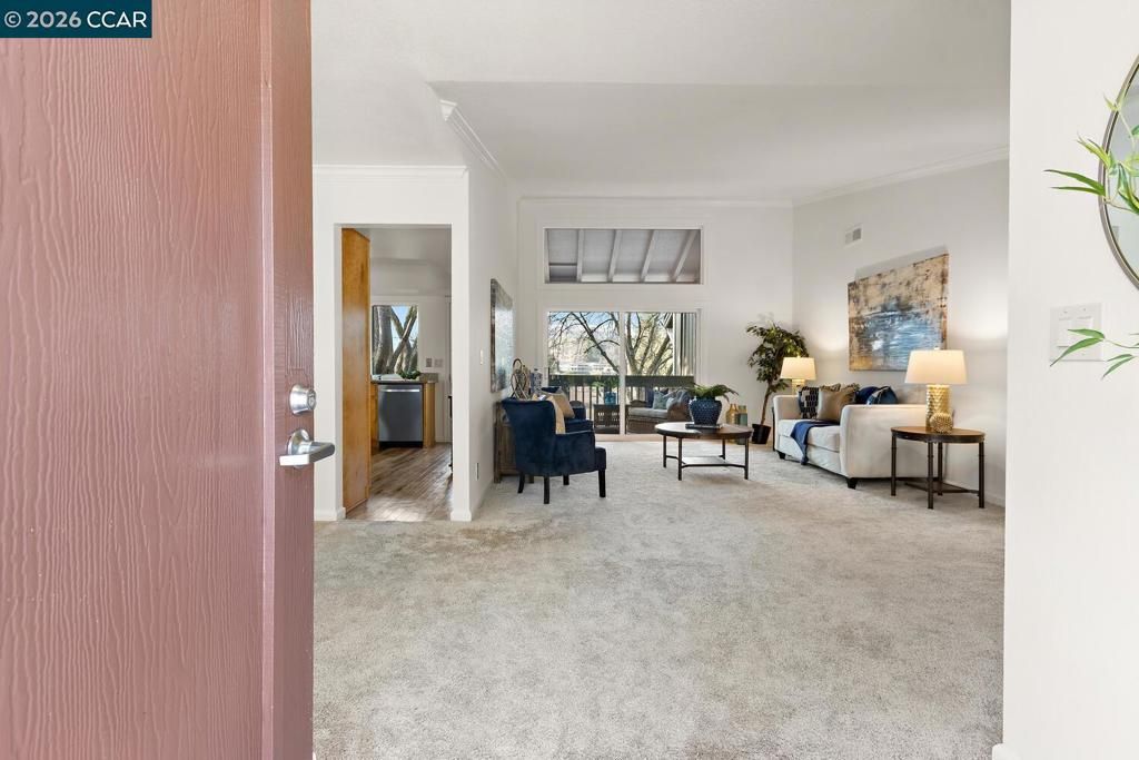 BIG REDUCTION! Beautiful updated upper-level Sierra condo. Bright and spacious. Vaulted ceilings. New interior paint. Large two bedrooms with good size closets. Large balcony with pleasant views. Newer dual pane windows. Newer heater & A/C. Newer carpet. Crown molding throughout. Windows & patio shutters. Recessed lighting. Double sink vanity in master bath. Three rooms access to large balcony. One car garage & secure storage. Newer side door into garage (next to steps). Level short walk to Creekside clubhouse, Event Center, golf course, pickleball courts, restaurant. This condo is located in the gated Rossmoor active adult community 55+. This beautiful home is ready for you! Call me for a private tour.