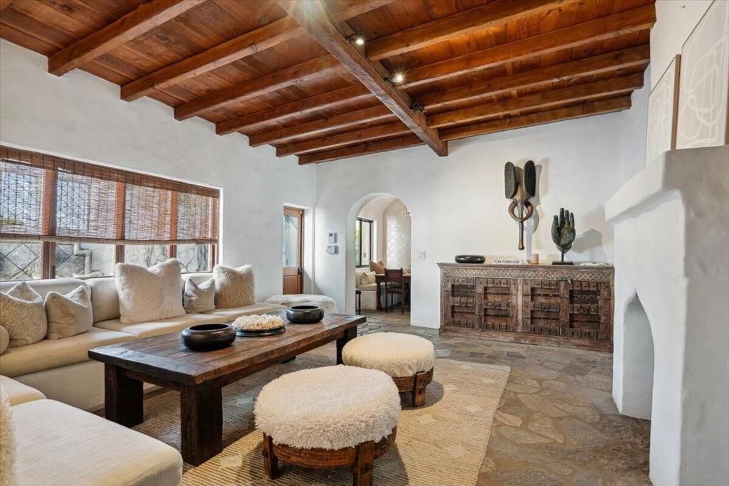 The Moroccan of Rancho Mirage is a true taste of Tangiers in the middle of the Californian desert. Originally built in 1950 this historical estate is a walled, gated oasis sitting on nearly an acre of land. Re-imaged by acclaimed designer Colas Moore it is both full of original charm and well considered luxurious detail. Behind solid mahogancy doors a serene fountain lined indoor courtyard welcomes you into the Hacienda style property. The house features a large master suite with private bath at one end and two further bedrooms and a bathroom at the other, with outside soaking tub and shower near guest bedrooms. A newly renovated modern kitchen finished with high end appliances and comfortable dining area flanks the spacious living room featuring vaulted wood beam ceilings,fireplace and quartzite flooring. The adjacent den opens up to a beautifully landscaped garden with citrus trees, magnificent lap pool and shaded napping cabanas. A large outdoor BBQ station and firepit lounge provide the perfect alfresco dining experience complete with panoramic mountain views. There's additional 1114 SF not calculated in assessors' information. New spa added in December 2025.
