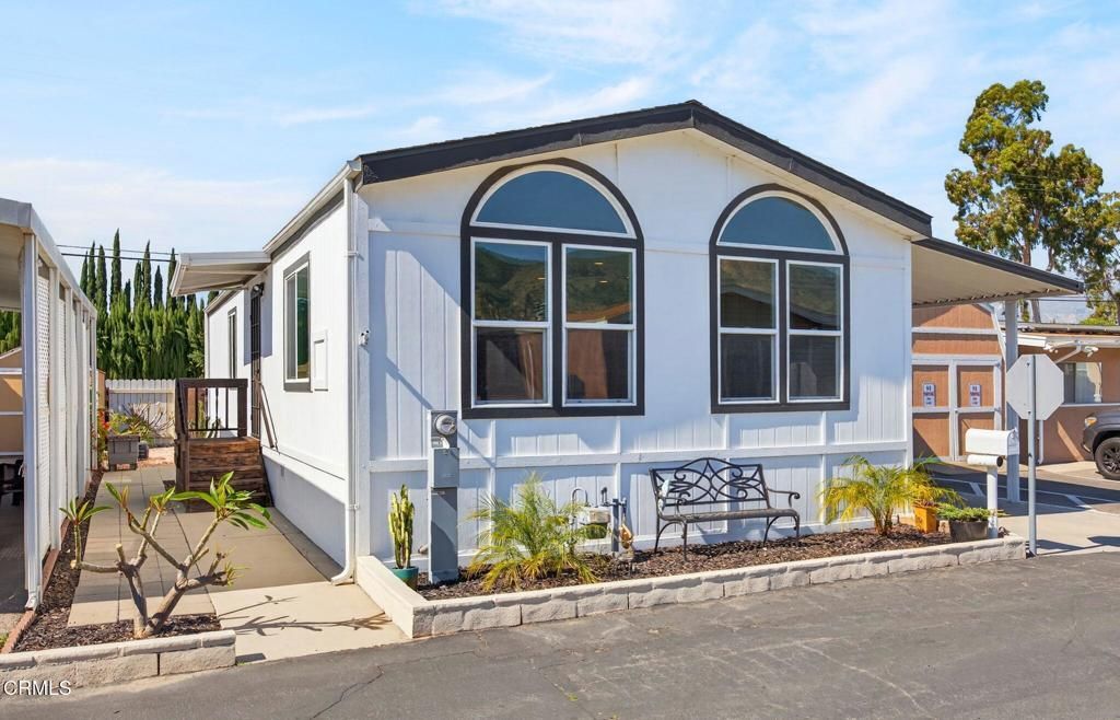 This adorable manufactured home in a senior park is priced to sell. Pride of ownership! Almost fully remodeled! Newer roof, new paint inside & out. Open concept and tastefully upgraded kitchen with island and vaulted ceiling. Updated flooring, counters, sink, stove, washer & dryer, both outside rails are upgraded. Newer double pane windows. Bathrooms upgraded. Newer appliances, ceiling fans & AC. Most furniture is included. Adorable and private back yard and a spacious shed. Reverse Osmosis water treatment with Culligan is on a lease, new owner can transfer to their name. The community amenities includes a refreshing pool for the hot Summer days, clubhouse, enclosed RV parking with small extra fee, doggy park. Close to shopping, restaurants, downtown Ventura, and beaches about 20 minutes away. Outstanding mountain views. Must see this one to appreciate it. LOW SPACE RENT! 55 years of age accepted, second resident can 40. requires 3 times the space rent plus $100. Credit to be 680 or better.