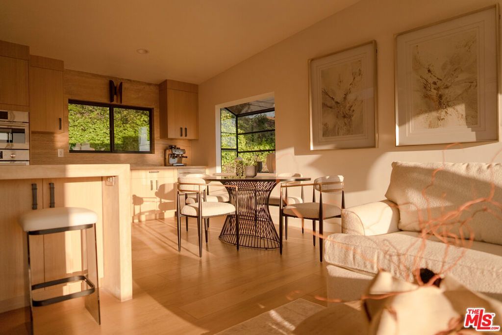 Prime location on the prestigious Celebrity Row in the Hollywood Hills. This newly remodeled 4-bedroom, 4-bathroom residence offers 3,300 sq ft of living space and is nestled on a private road, featuring a two-car garage and additional guest parking. The Primary Suite includes a walk-in closet, a separate wardrobe/dressing room, and a spacious Primary Bathroom with a soaking tub and a walk-in shower. The brand-new kitchen is fully equipped with modern appliances and includes a dedicated coffee station, perfect for everyday comfort and entertaining. A spacious den on the second floor offers versatile possibilities it can be designed as a showroom, meditation space, or exercise room. The den also includes an adjacent bonus room, ideal for a workshop, creative studio, or podcast room. The lower-level floor is fully private with its own separate entrance. It features a bedroom with a walk-in closet, a living room, kitchenette, steam spa shower, and outdoor patio perfect as a private guest suite, bachelor pad, or artist studio. The home enjoys stunning views of the Griffith Observatory, Universal Studios, and the iconic Chemosphere by John Lautner, a historic Los Angeles landmark, visible directly from the property. Scenic Mulholland Drive is just steps away, offering a picturesque route that quickly connects you to the heart of Los Angeles or the Valley.